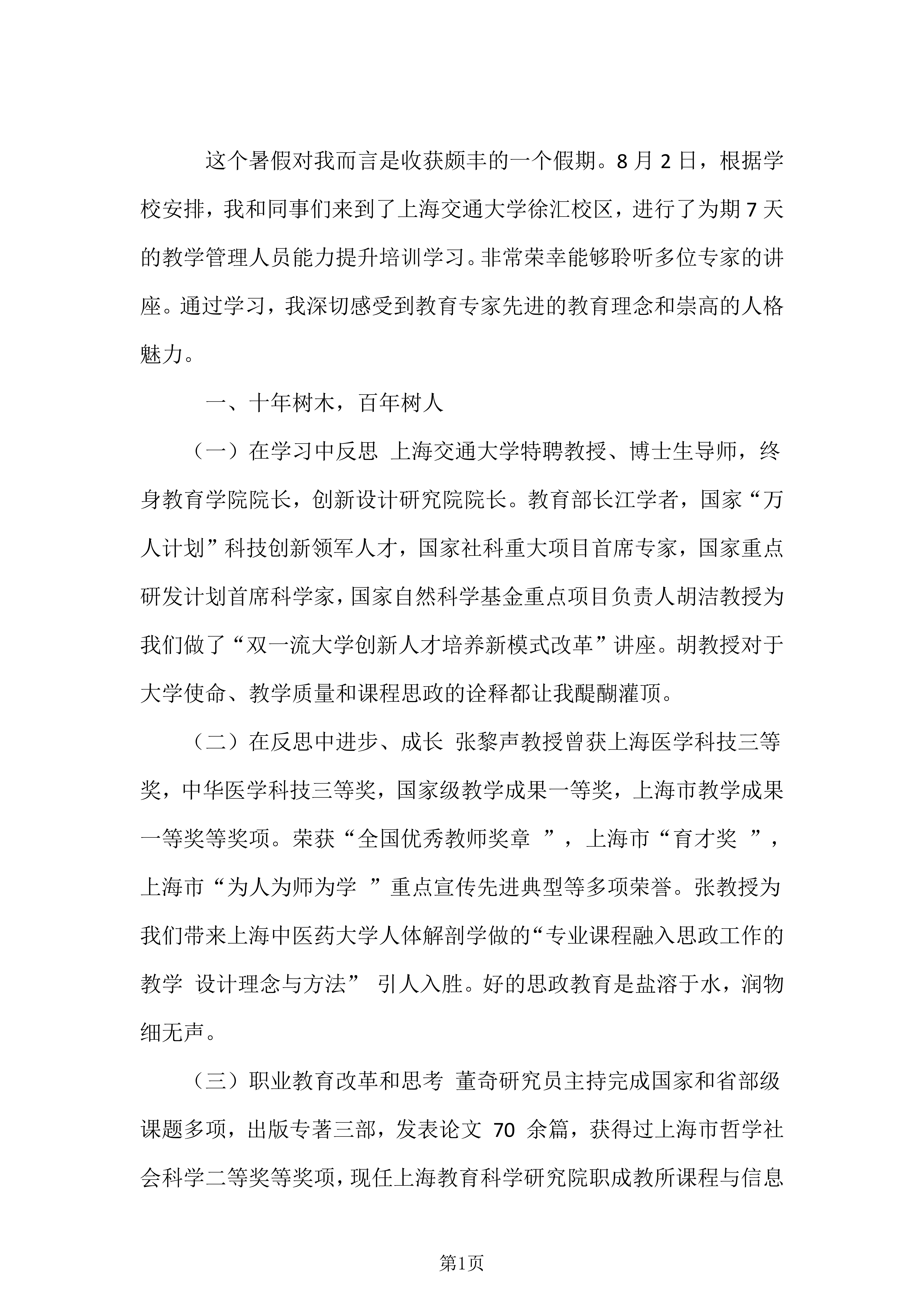 【上海交通大学培训心得】冯翠娟:教育的本质是一棵树摇动另一棵树