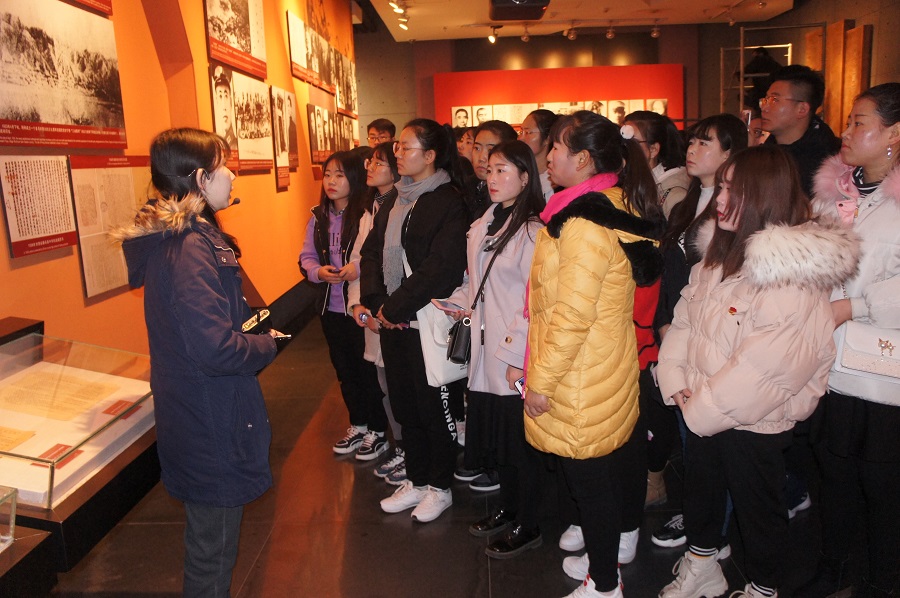 在专业讲解员的引导下,大家怀着无比崇敬的心情参观了纪念馆,重温了党的光辉历史,接受了革命传统教育。一件件珍贵的文物,一幅幅感人的照片,一段段震撼内心的历史故事,把大家带回到革命时期那些波澜壮阔的难忘岁月,让同学们真实而强烈地感受到革命先辈们血脉里深藏着的爱国之情、忧国之心和报国之志,一次次唤起同学们对那一段历史的追溯和对革命先烈们的敬仰之情。
