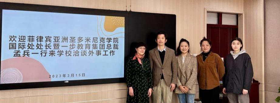 菲律宾亚洲圣多米尼克学院国际处处长暨一步教育集团董事长孟兵一行来校访问,交流洽谈师生学历提升方案。