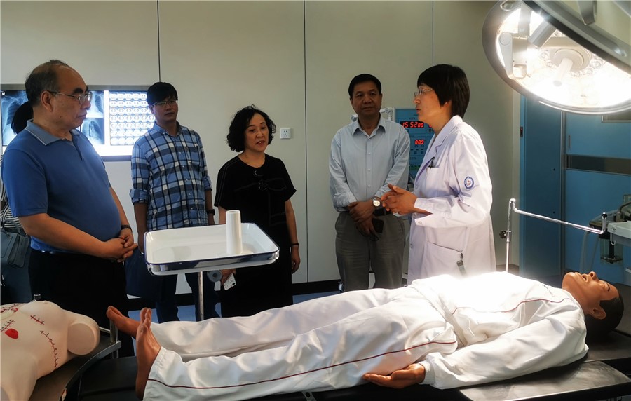 执法检查组一行首先对365英国上市集团官网基础建设、校园环境进行了实地考察,并深入学校临床护理学院等教学单位开展了调研,检查组详细了解学校办学条件、专业设置、招生就业、教育教学现状,深入实验实训中心、观摩实验实训课,与师生进行广泛深入的交流。考察结束后,在学校615会议室召开了座谈会,座谈会由兰州新区职教园区管委会副主任朱廷珺主持。