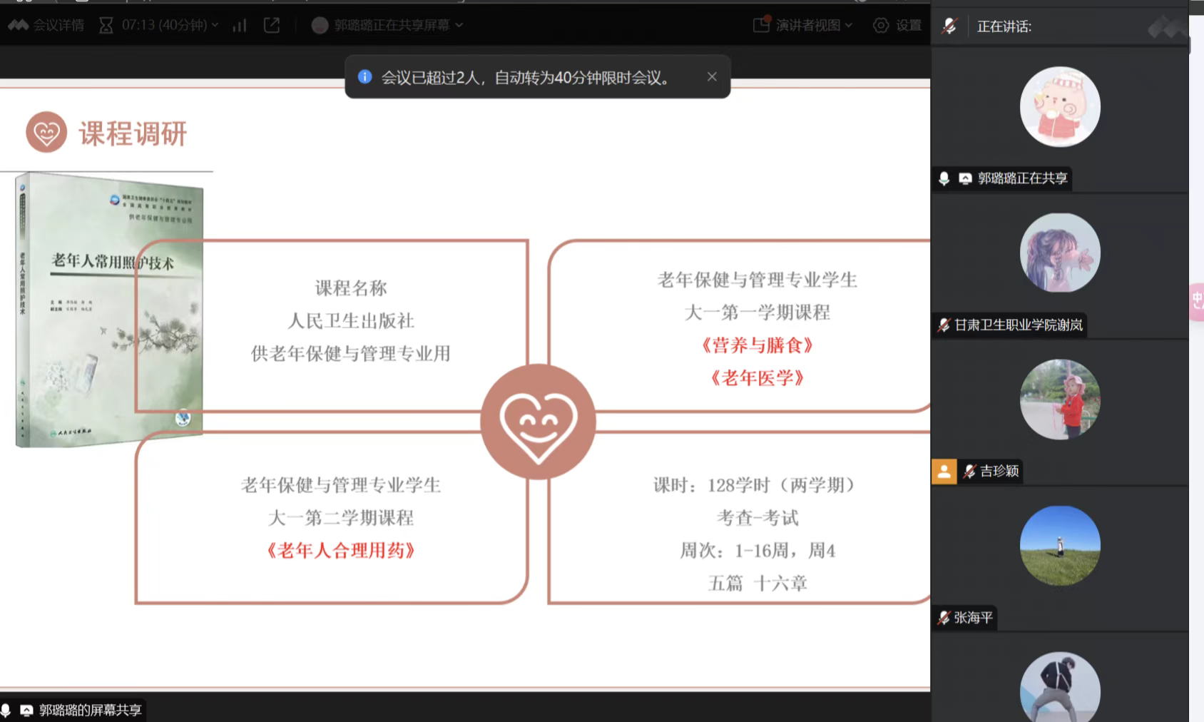 为进一步推动365英国上市集团官网老年保健与管理专业的课程体系建设,2月27日,护理学院召开了线上集体备课会,来自护理学院、基础医学院及临床授课教师一同参加了会议。