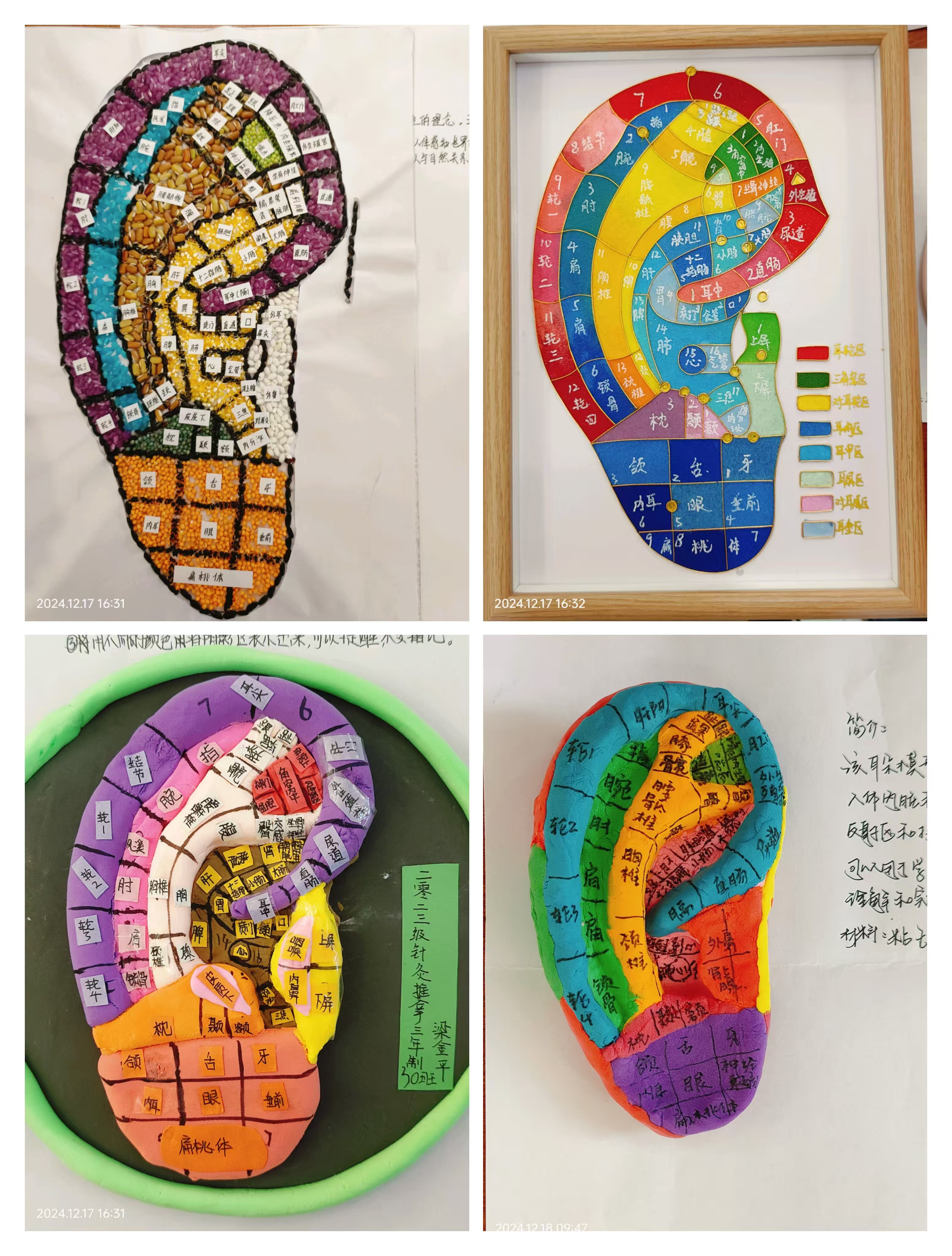 展览现场,形态各异却又精准细致的耳穴模型整齐陈列,这些凝聚着学生心血的作品,是理论与实践完美结合的结晶。学生们依据深厚的专业知识,巧妙地将耳部复杂的经络穴位系统以直观清晰的方式呈现于模型之上,配合着简洁而专业的文字阐释,深入浅出地解读了耳穴疗法的精妙之处。评委们从专业知识准确性、创新性、制作工艺与质量等多方面进行了细致评分,评选出了一等奖2名、二等奖3名、三等奖5名,并对学生们的努力与才华给予高度评价。