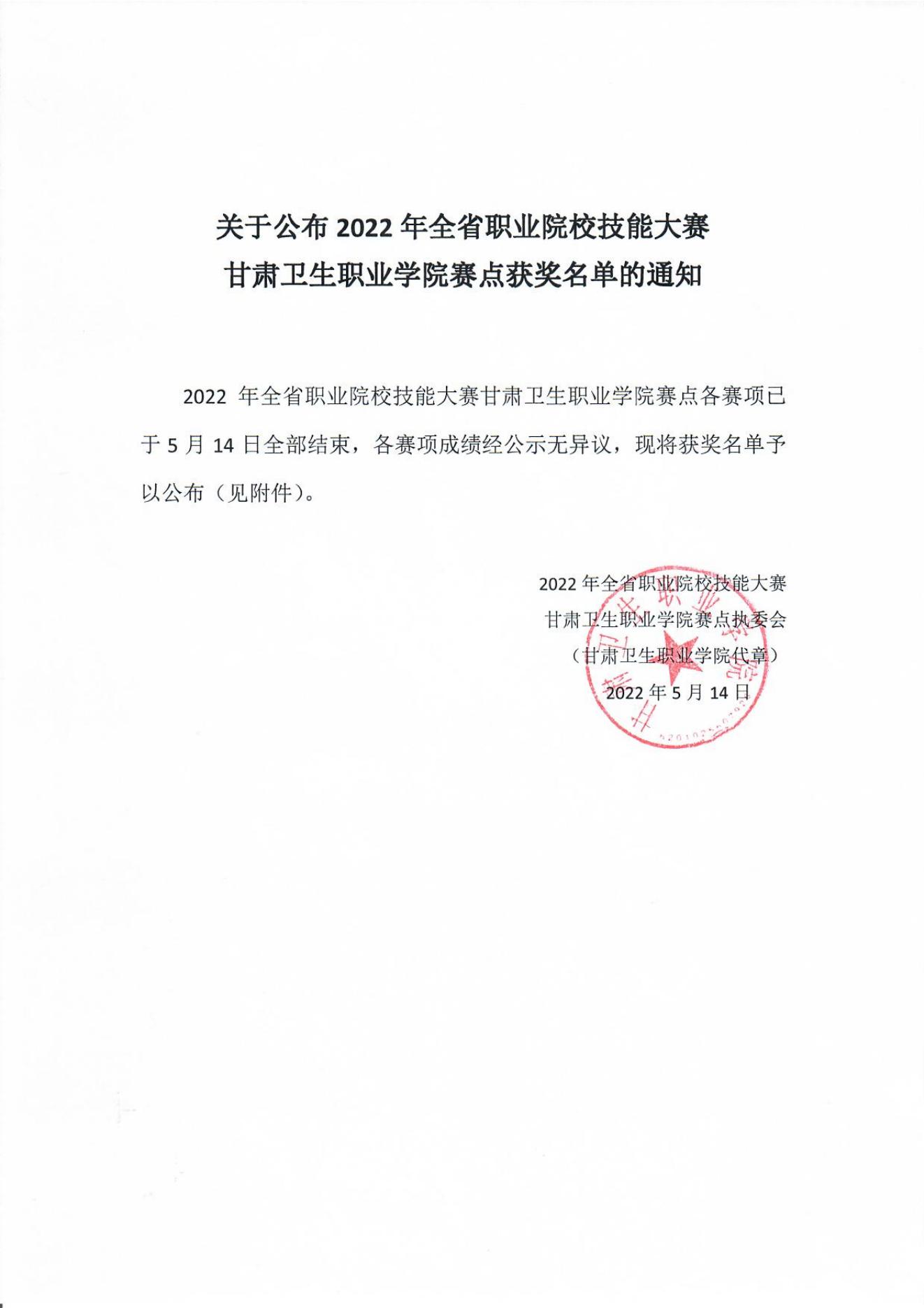 关于公布2022年全省职业院校技能大赛365英国上市集团官网赛点获奖名单的通知