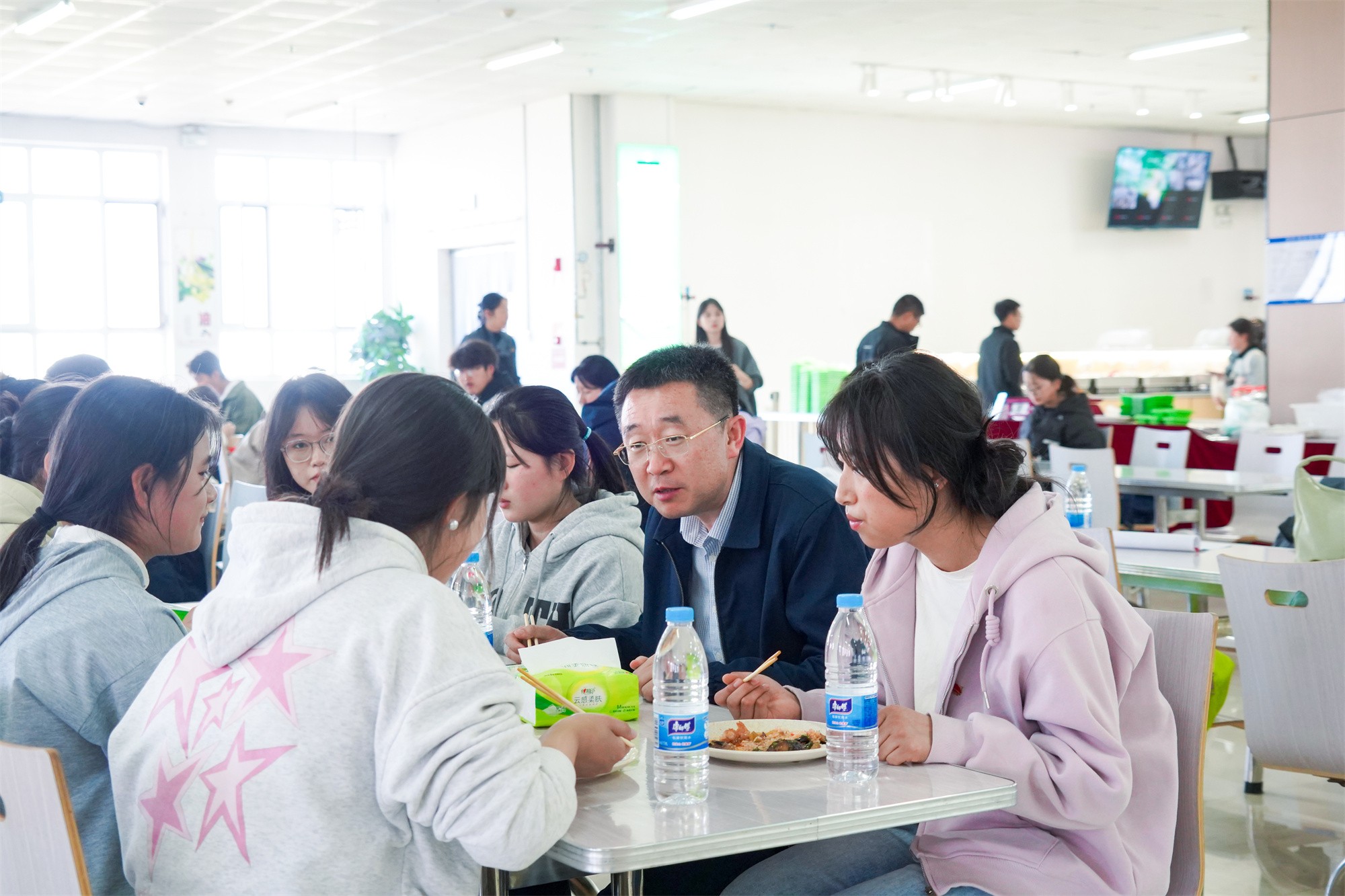 王建成校长一行认真查看了食堂的环境卫生、食材品种,向食堂管理人员了解食堂的经营情况,食品安全、消防安全各项措施落实情况。他强调,食品安全是学校安全工作的重中之重,有关部门要加大监督监管力度,食堂经营主体要切实履行主体责任,强化日常管理,让学生在学校食堂能够吃得放心、吃得安心。用餐期间,王建成校长与同学们亲切交流,详细了解同学们对食堂饭菜的价格、质量、种类和服务质量等方面的意见和建议,叮嘱同学们要均衡饮食、注意营养搭配,养成良好的饮食和卫生习惯,保持健康身体,勤奋学习,不负韶华。