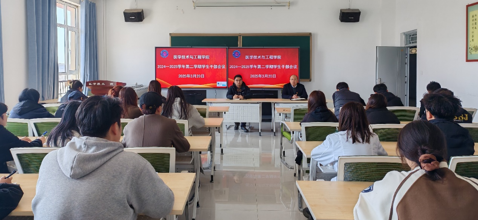 3月20日,学院组织召开新学期学生干部工作会议。会议由学院党总支书记张绍进主持,党总支副书记白玉祥、团学办公室全体老师及团委、学生会主要干部、各班级班长共计50余人参加会议。