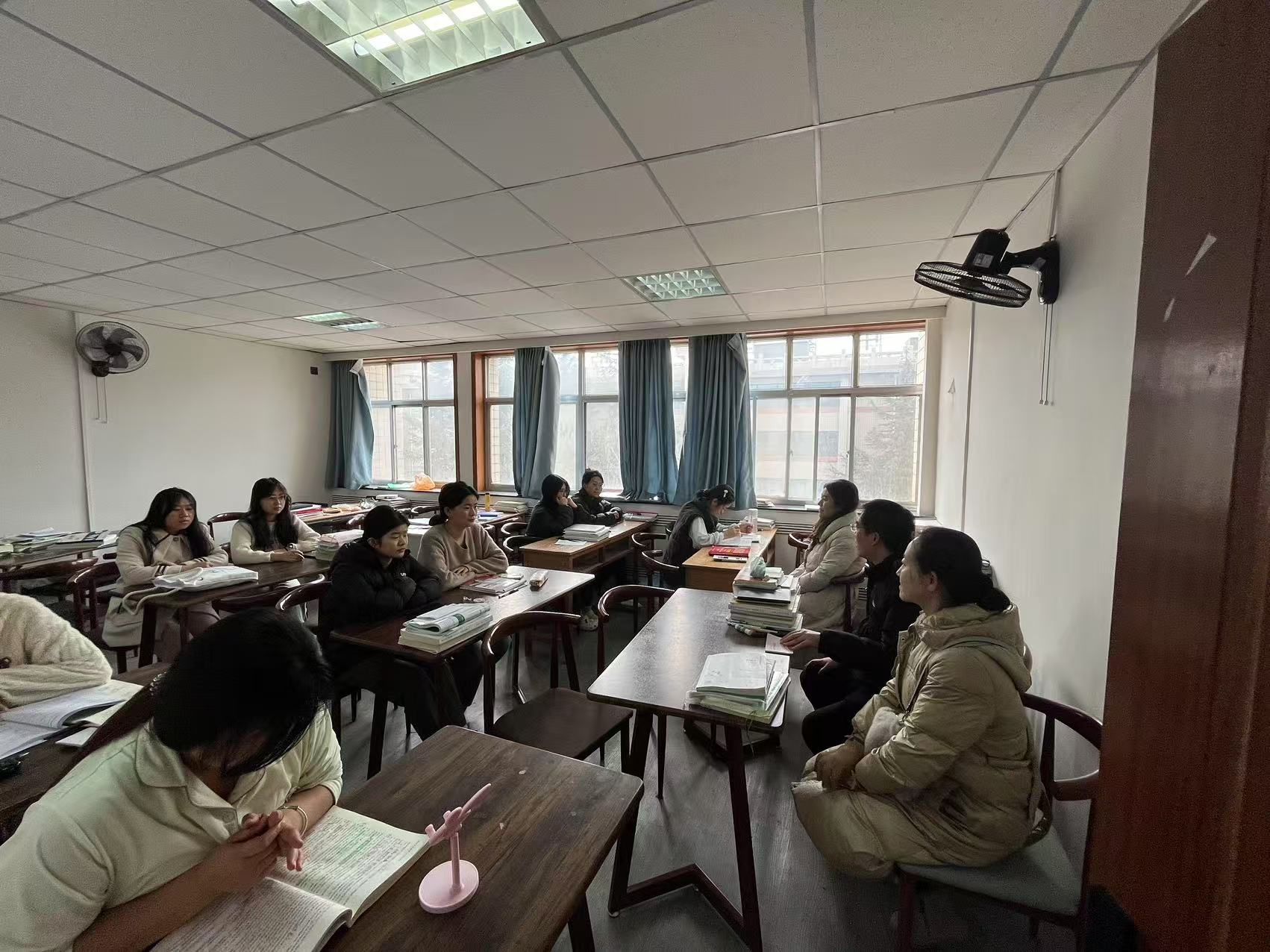 在长城宾馆住宿点自习室内,学院班子成员和实习学生进行座谈交流,对学校近期实习就业安排进行了说明,对2025年就业工作做了进一步动员;老师们对学生们提出的问题耐心解答,特别是针对实习转就业、校园招聘、春节放假等与学生息息相关的问题进行深入沟通。马彦军鼓励同学们珍惜实习机会,虚心向带教老师学习,不断提升自己的专业技能和综合素质,以严谨的态度立足岗位工作,热忱对待每一位患者,为将来的职业生涯积累宝贵经验。同学们纷纷表示,通过实习,不仅将课堂所学知识应用到实际工作中,更深刻体会到护理工作的重要性和使命感,今后一定会更加努力,不辜负学校的期望。