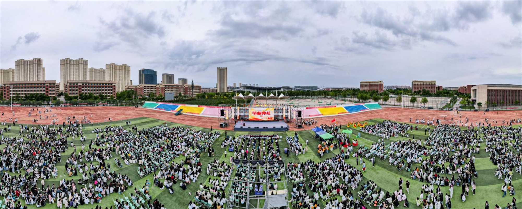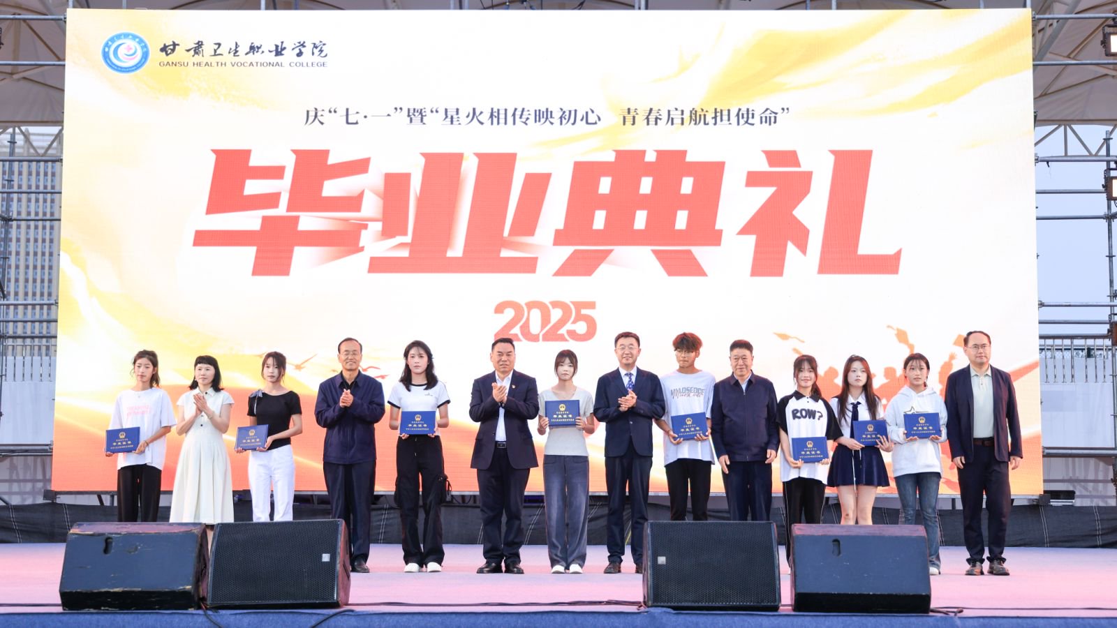 6月23日晚,365英国上市集团官网2025届学生毕业典礼在云飞体育场举行。全体校领导,各处室、二级学院负责人,毕业班辅导员、任课教师,学校安保、后勤、物业、餐饮工作人员,毕业生家长代表、2025届毕业生和全体在校生参加典礼,兰州新区职教园区服务保障中心、兰州新区教育和卫生健康委员会、兰州新区第一人民医院、兰州新区企业服务中心、兰州市公安局兰州新区分局、兰州市特殊教育学校领导及人员应邀出席。活动由学校副校长杨频主持。
