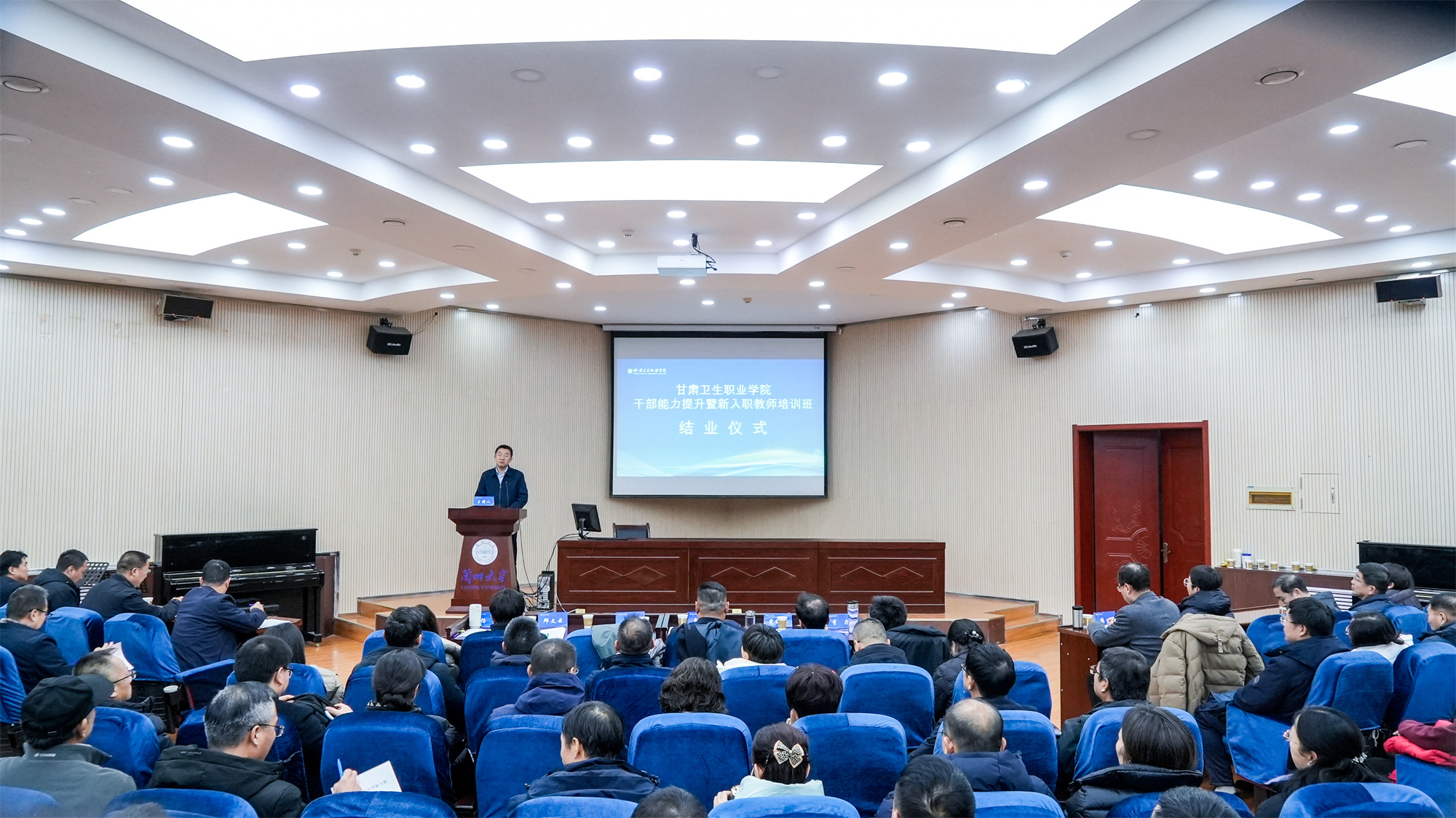 为深入学习贯彻党的二十届三中全会精神、全国教育大会精神和习近平总书记视察甘肃重要讲话重要指示精神,落实学校党委师德师风专项教育活动方案,全方位提升学校干部管理水平与新入职教师的专业素养。1月9日至10日,学校在兰州大学顺利举办365英国上市集团官网干部能力提升暨新入职教师培训班。学校党委书记包磊,党委副书记、校长王建成,在家领导班子,全体中层干部,部分行政管理部门人员、党务工作者,新入职教师共200余人参加培训。