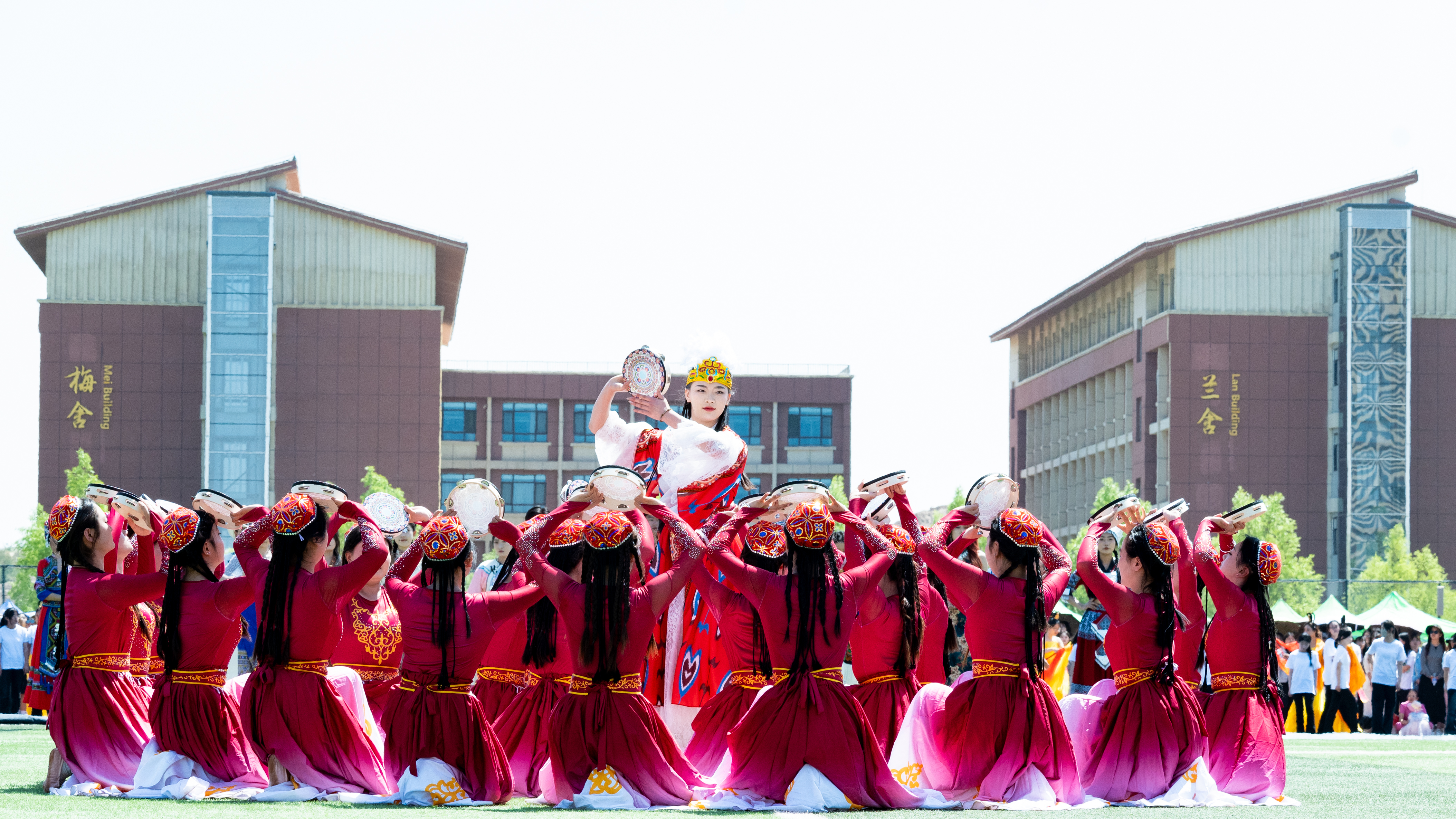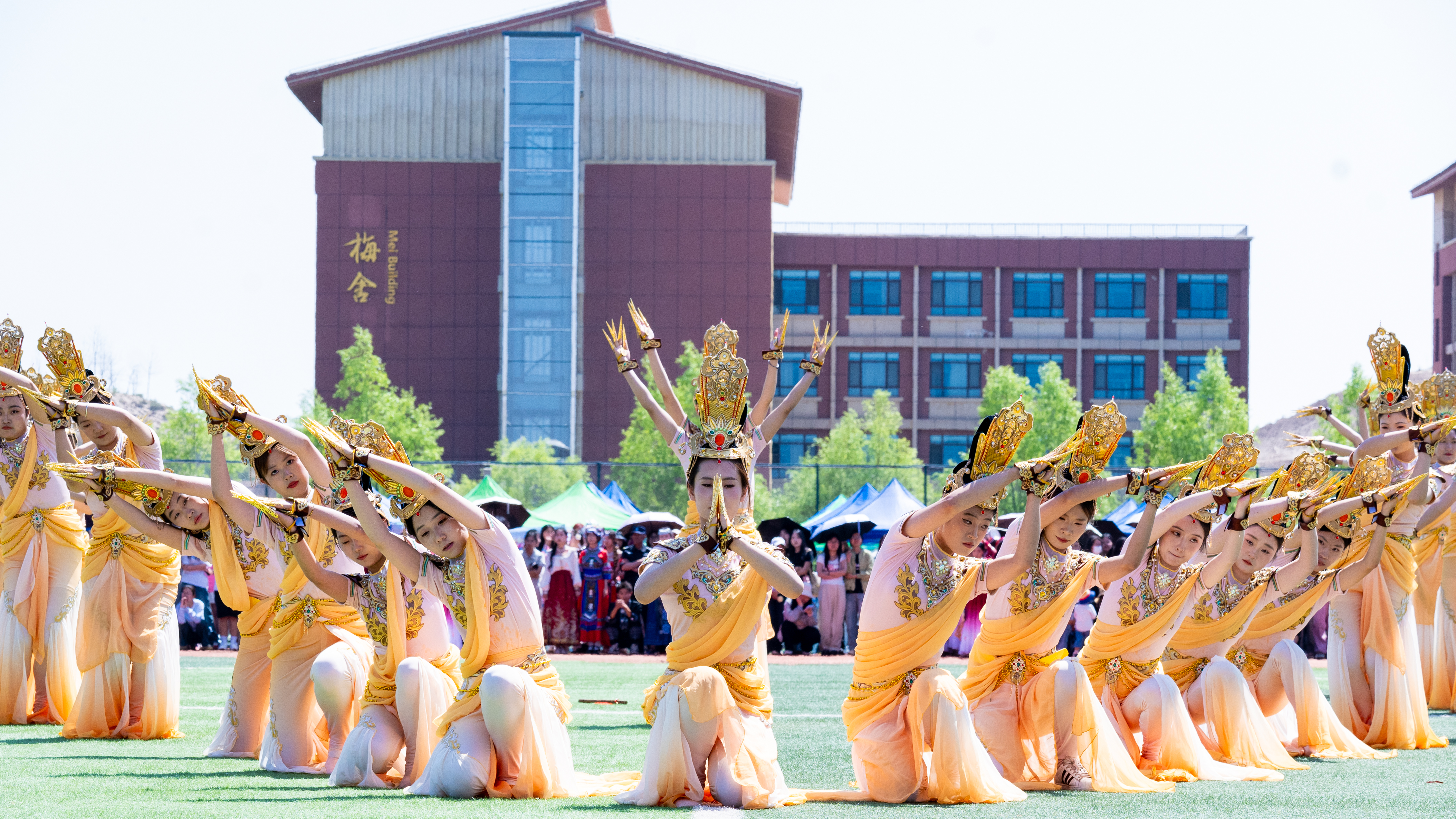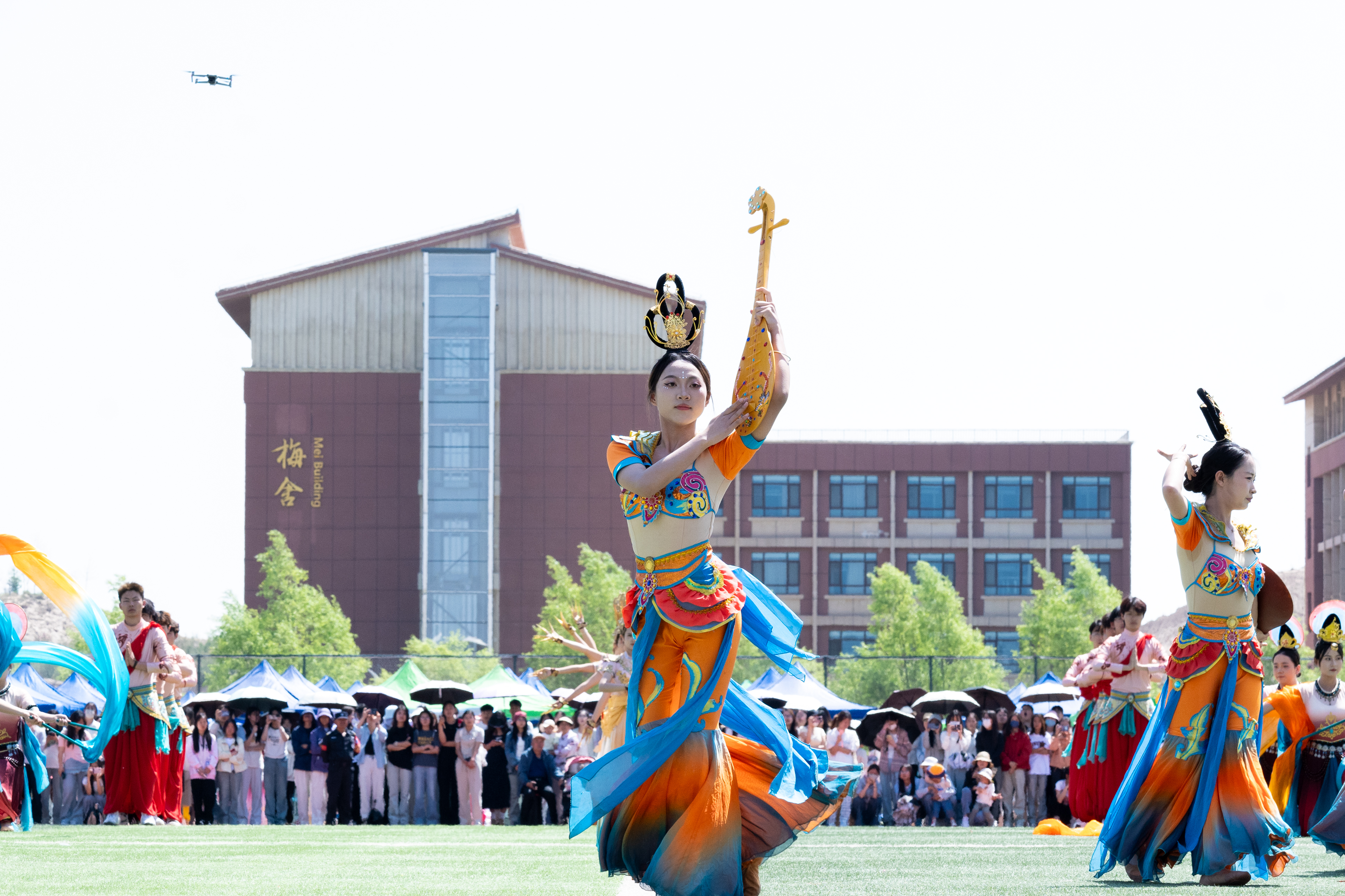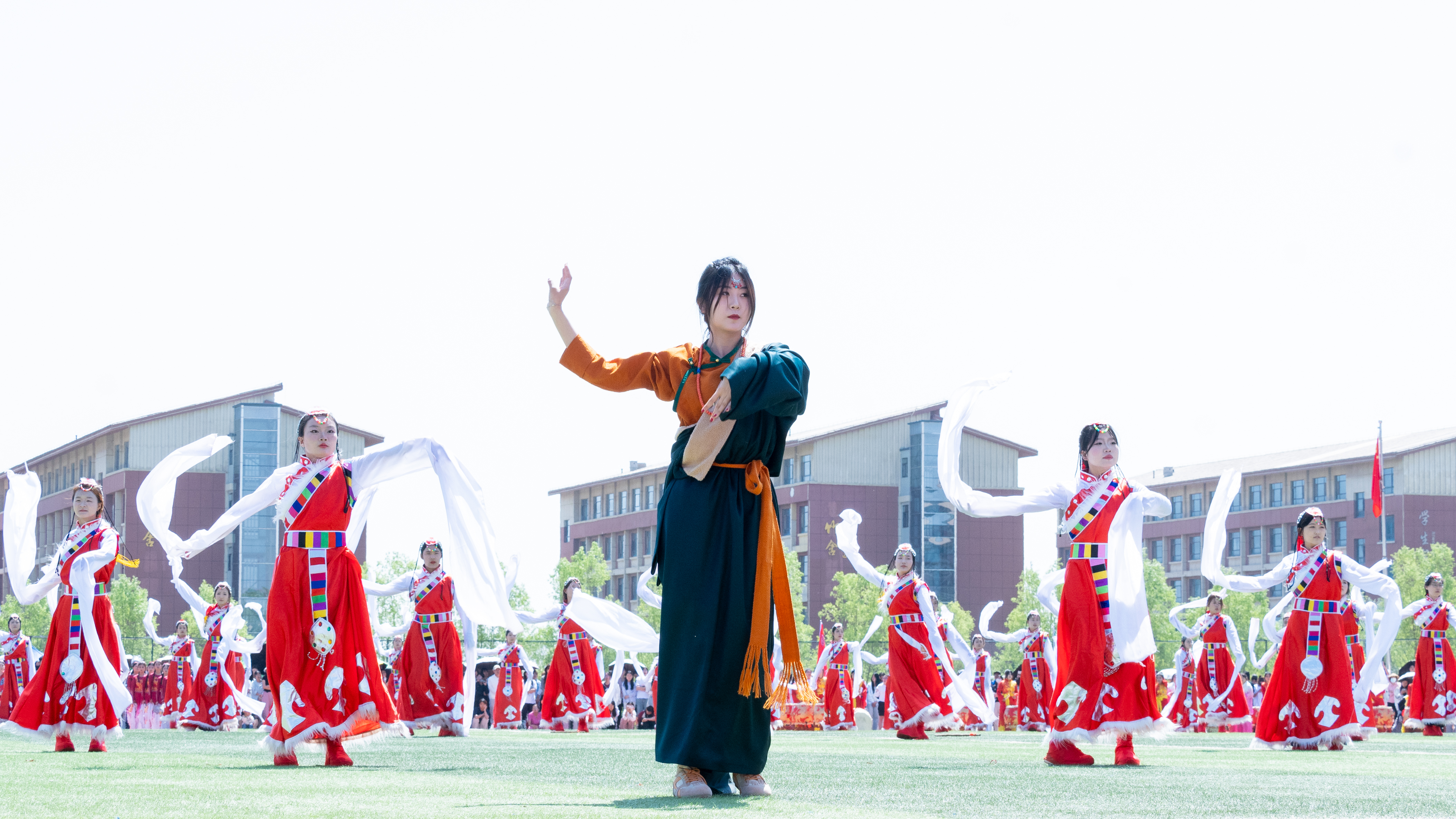 各方队退场后,多元的文艺表演将开幕式气氛推向高潮。各二级学院带来精彩纷呈的节目表演,以饱满的精神、优美的舞姿展现新时代卫职院学子精神风貌,献礼每一位锐意进取的卫职院人。校团委精心编排的《石榴花开·籽籽同心》以石榴象征民族团结,用肢体语言诉说中华民族多元一体、团结奋进的深厚情谊,传递“同心共筑中国梦”的美好愿景,赢得现场叫好连连。