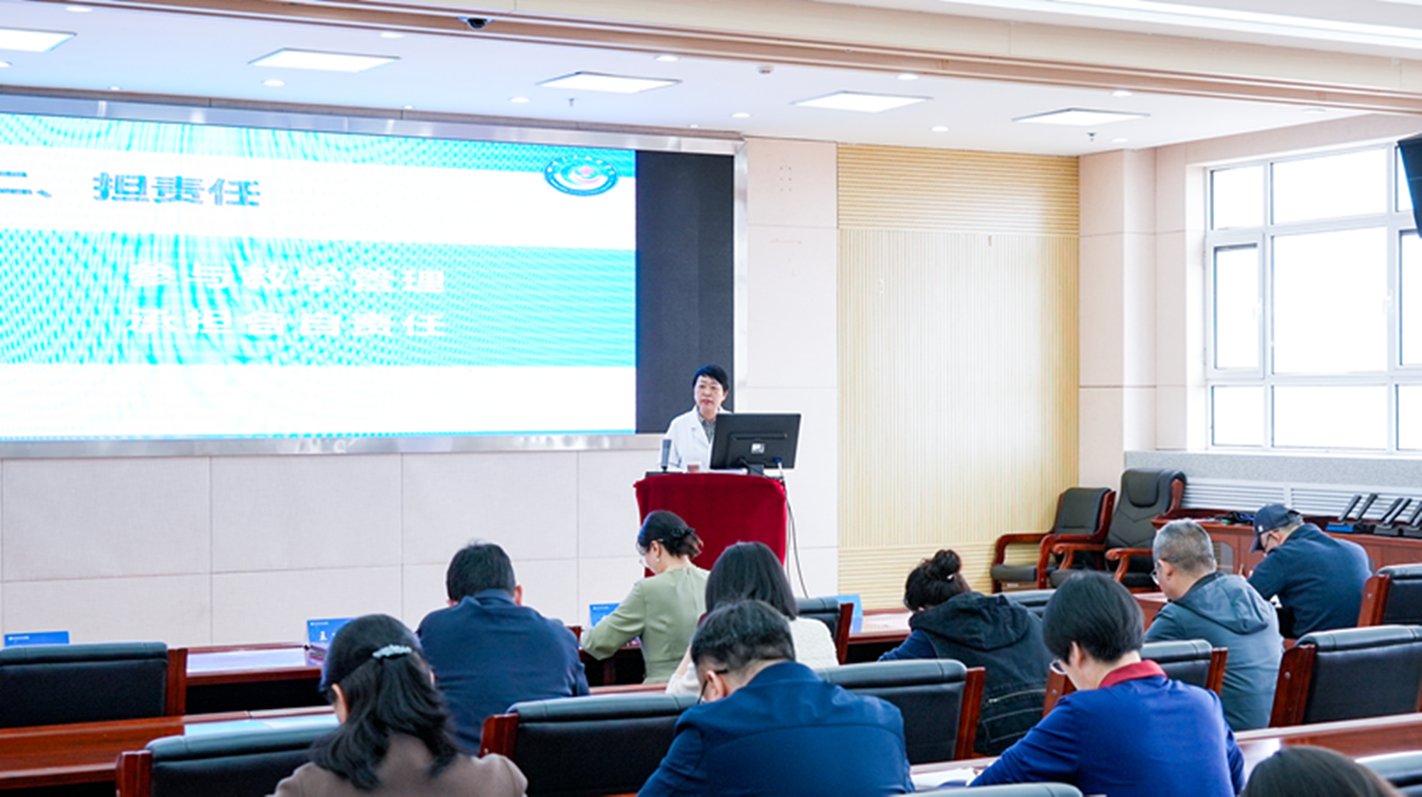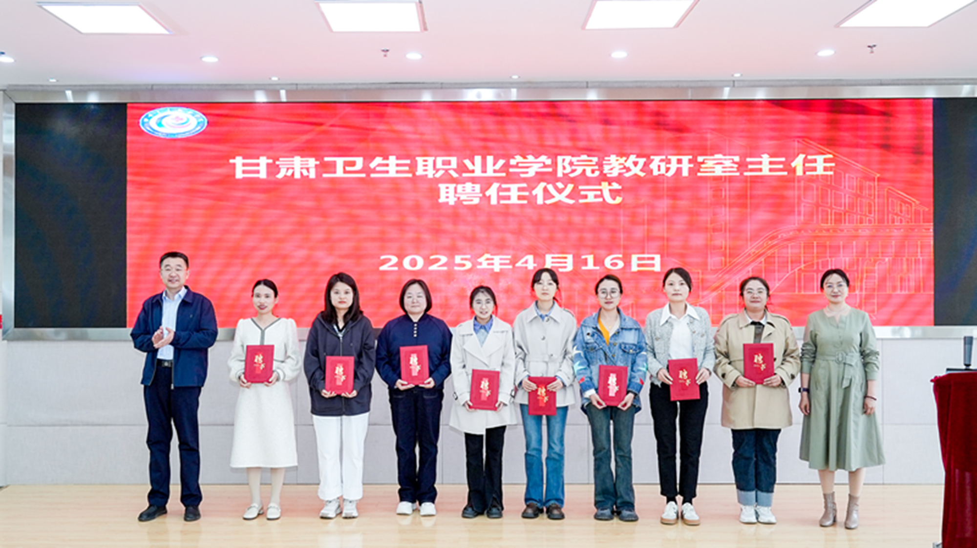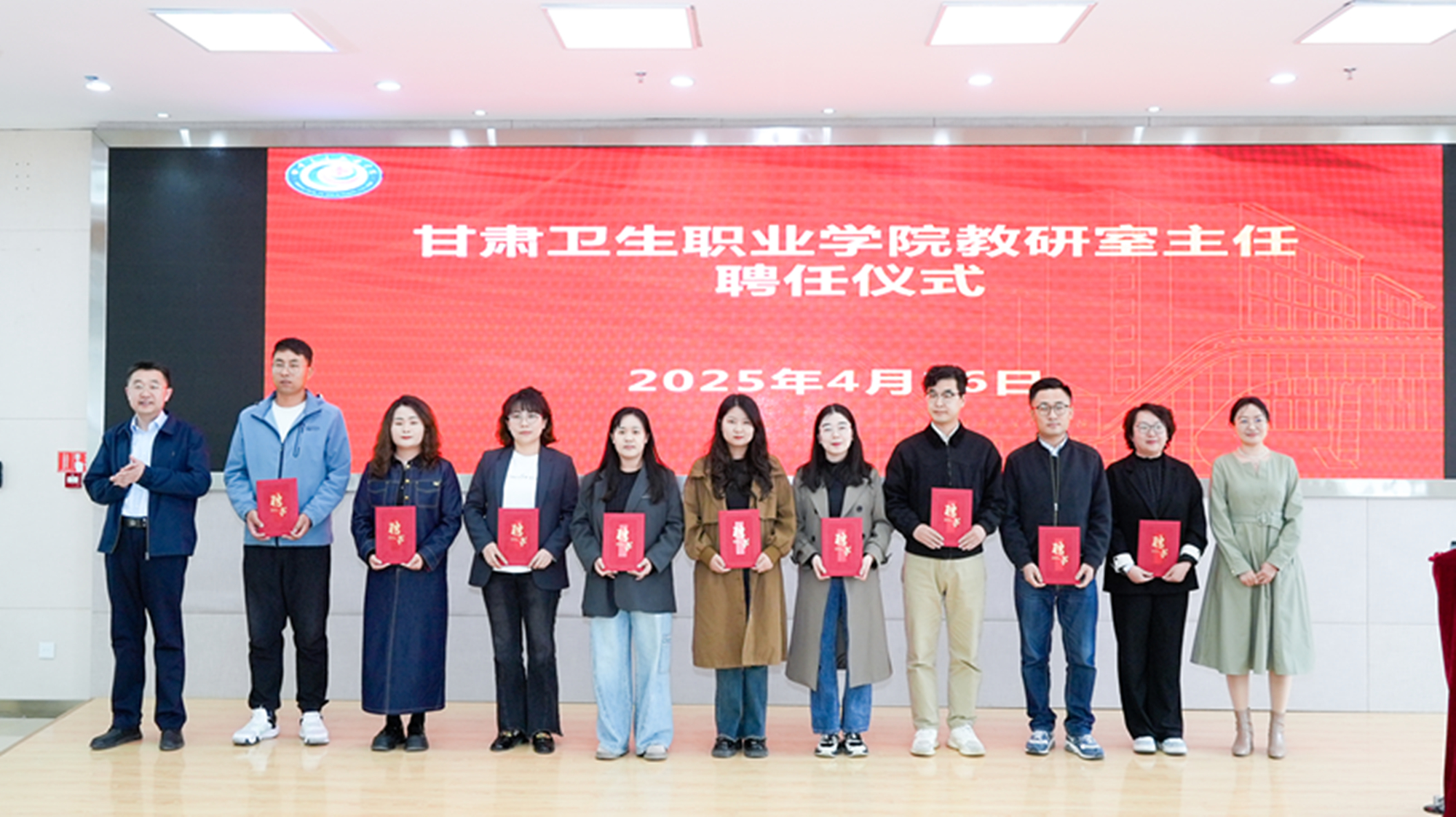 第二阶段举行教研室主任聘任仪式。副校长杨频宣读《关于教研室设置及主任聘任的通知》,全校共设立27个教研室,涵盖临床医学、中医、药学等10个教学单位及跨部门联合教研室。校领导为新任主任颁发聘书,医学影像与智能医疗装备教研室主任吕俊宏作为代表表态,承诺“以团队协作推动专业建设,服务学校高质量发展目标”。