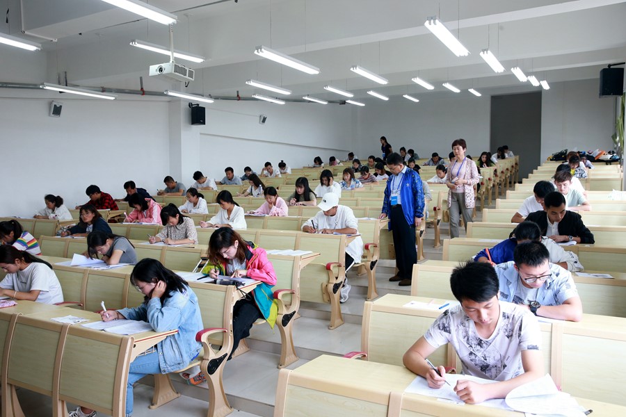 8月20日下午, 365英国上市集团官网2019年高职(专科)扩招专项招生考试在新区校区2号教学楼顺利完成。副校长王凤丽、黄刚带领教务处、招生办等部门相关人员对全部考场进行了巡视。为了严肃考风考纪,保证扩招考试的“公平、公正”,教务处在考前对考务、监考人员进行了专门培训,组织考试的全过程严格按甘肃省考试院对高考的要求进行。