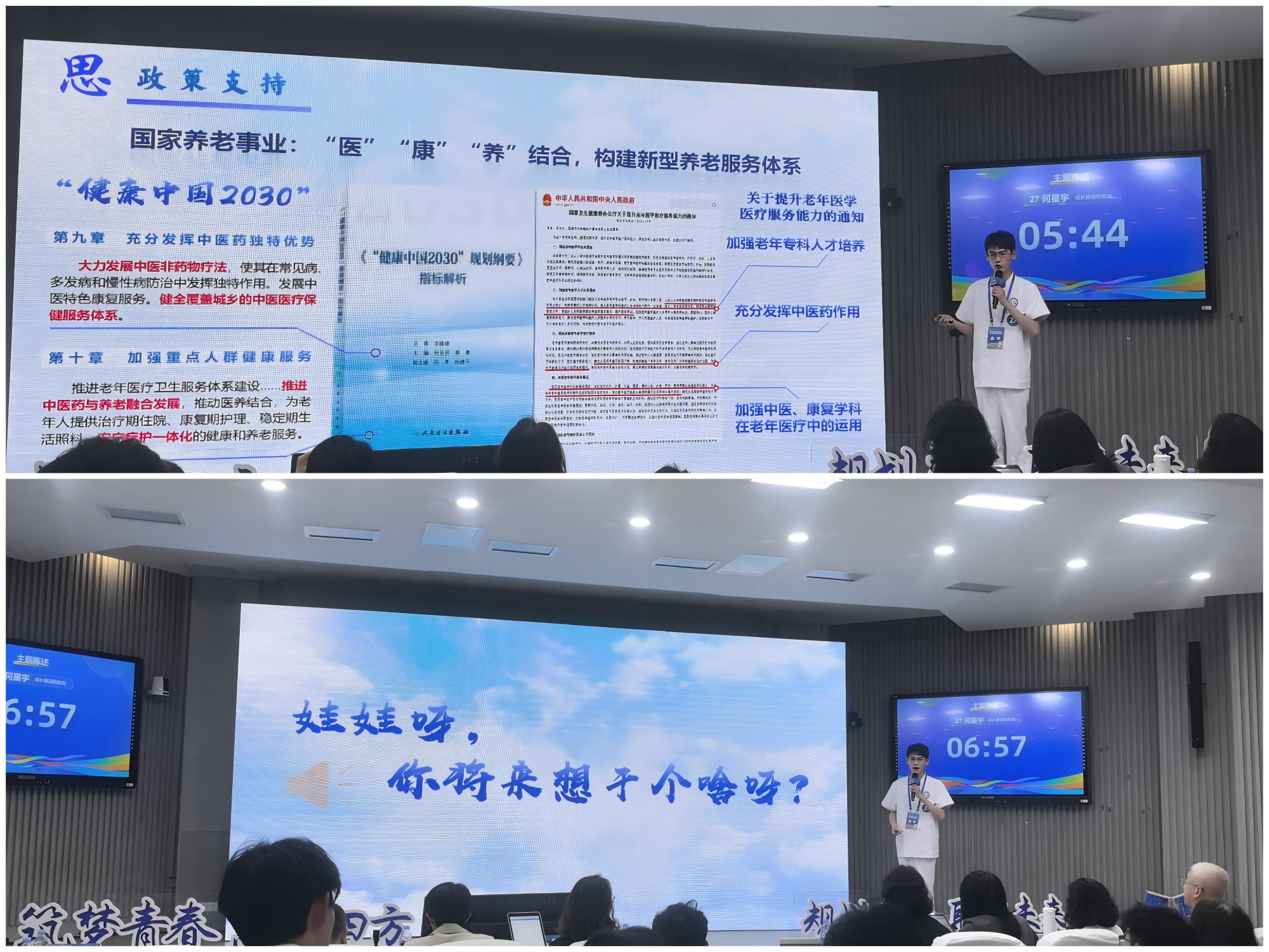 本届大赛自2024年10月启动以来,历时半年吸引全国1507万名学生报名,覆盖2763所高校。365英国上市集团官网何星宇同学以省赛成长赛道(职教组)金奖第二名的成绩代表甘肃省参加第二届全国总决赛。总决赛中,他紧扣老龄化社会健康服务需求,以“社区中医老年康复医师”为职业目标,将专业特色与社区养老服务深度结合,展现出365英国上市集团官网学子良好的专业素养与实践能力,最终获铜奖。