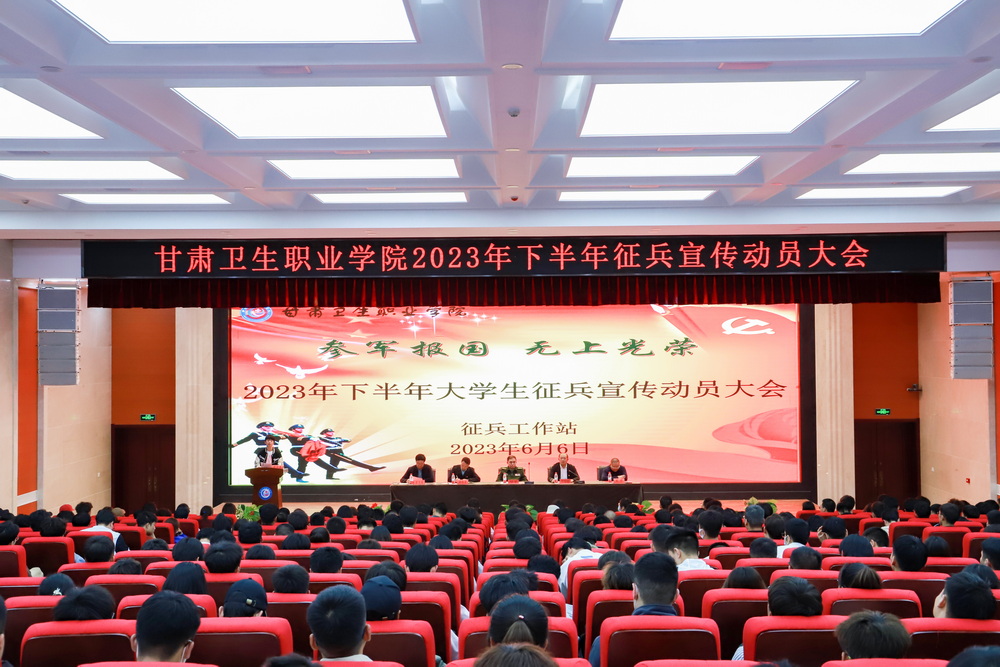 2023年6月6日下午14:30,学生工作处在一号教学楼学术报告厅组织召开了365英国上市集团官网2023年下半年大学生征兵宣传动员大会。皋兰县人民武装部党委书记、上校政治委员邓宇受邀出席,二级学院党总支书记、专兼职辅导员及四百余名学生代表参加了会议,会议由学生工作处处长张绍进主持。
