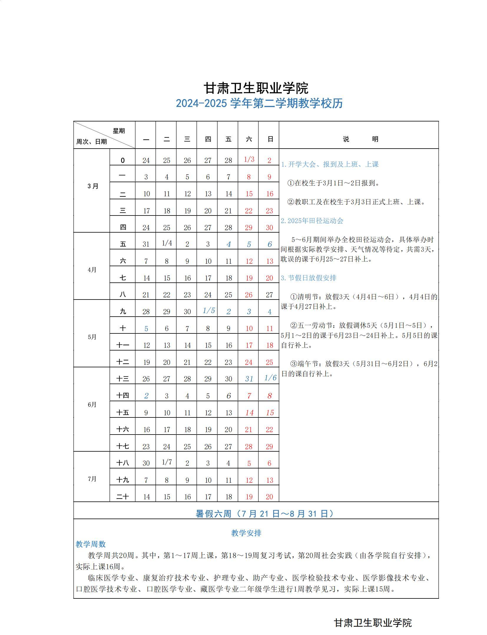 365英国上市集团官网2024-2025学年第二学期教学校历