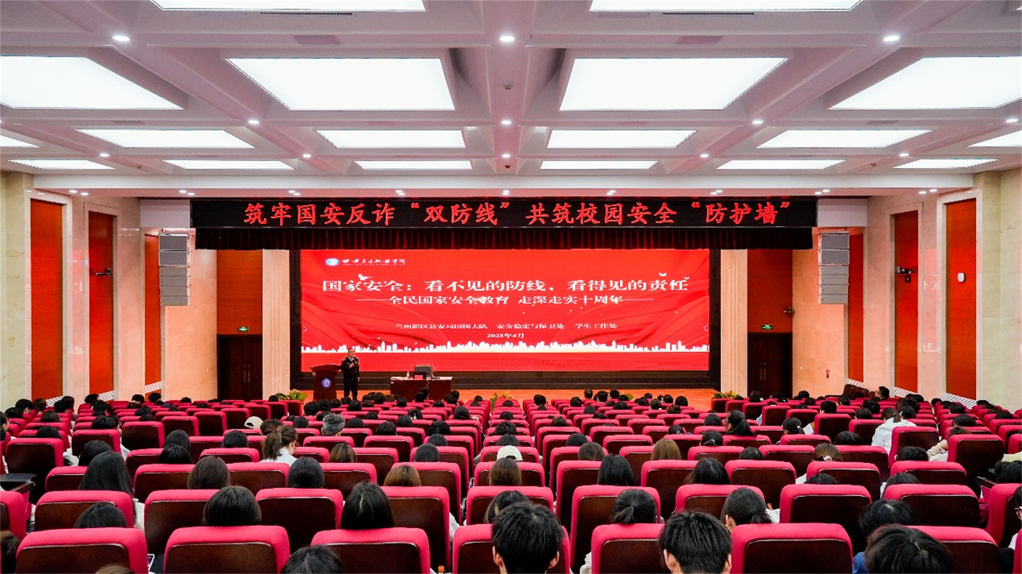 4月22日,学校邀请兰州新区公安局国保大队队长王道文警官以《国家安全 我的责任》为题开展了全民国家安全教育主题讲座。学校安全稳定与保卫处、学生工作处、学院辅导员、学生代表共400余人参加。