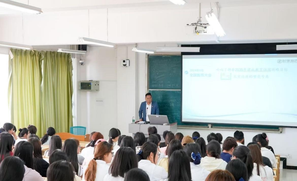 包磊以《从教育大国迈向教育强国》为题,立足国家发展全局,以详实的数据与生动的案例,深刻阐释了我国教育事业取得的历史性成就,科学解析了实现从“教育大国”向“教育强国”历史性跨越的时代内涵,全面分析了当前我国教育发展面临的机遇与挑战,指出教育强国建设对于实现民族复兴伟业的战略支撑作用。强调教育强国之“强”,核心在于育人质量之强、科技创新能力之强、服务贡献水平之强,勉励青年学子深刻认识自身肩负的时代责任。