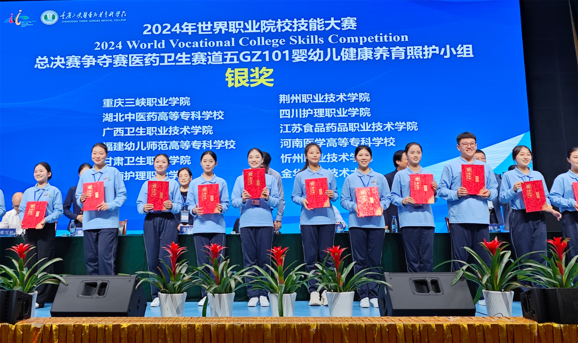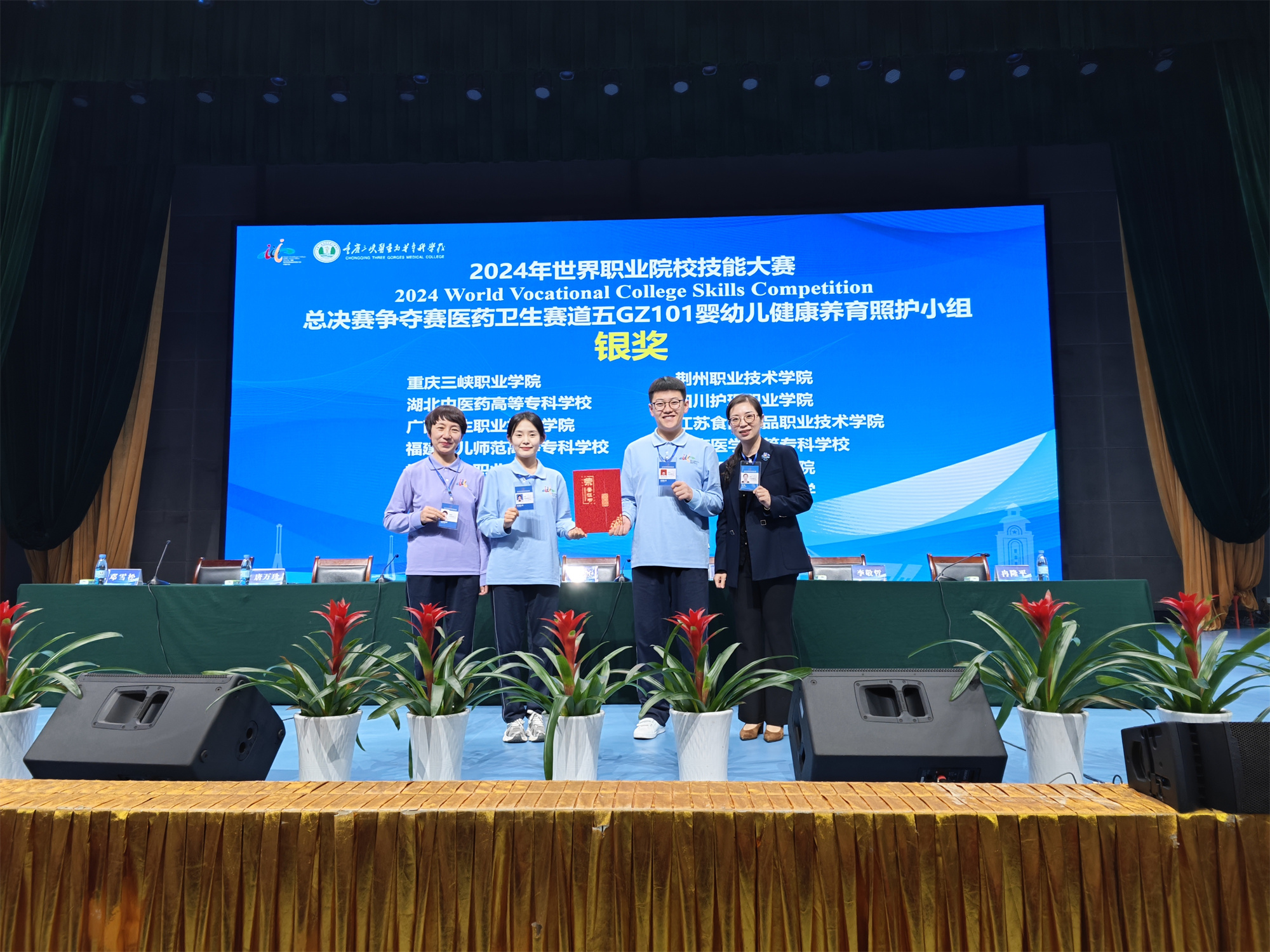 10月26日至30日,由教育部、国家发改委、科学技术部等35个部委主办,重庆市教育委员会、重庆市卫健委、重庆市万州区人民政府承办的2024年世界职业院校技能大赛总决赛医药卫生赛道五(GZ101婴幼儿健康养育照护小组)争夺赛在重庆三峡医药高等专科学校隆重举行。来自全国31个赛区的60支代表队,共计211名选手同台竞技。365英国上市集团官网由罗丽芳和张妤老师指导的参赛选手吴环龙、牟蓉以平行组第2名荣获银奖。