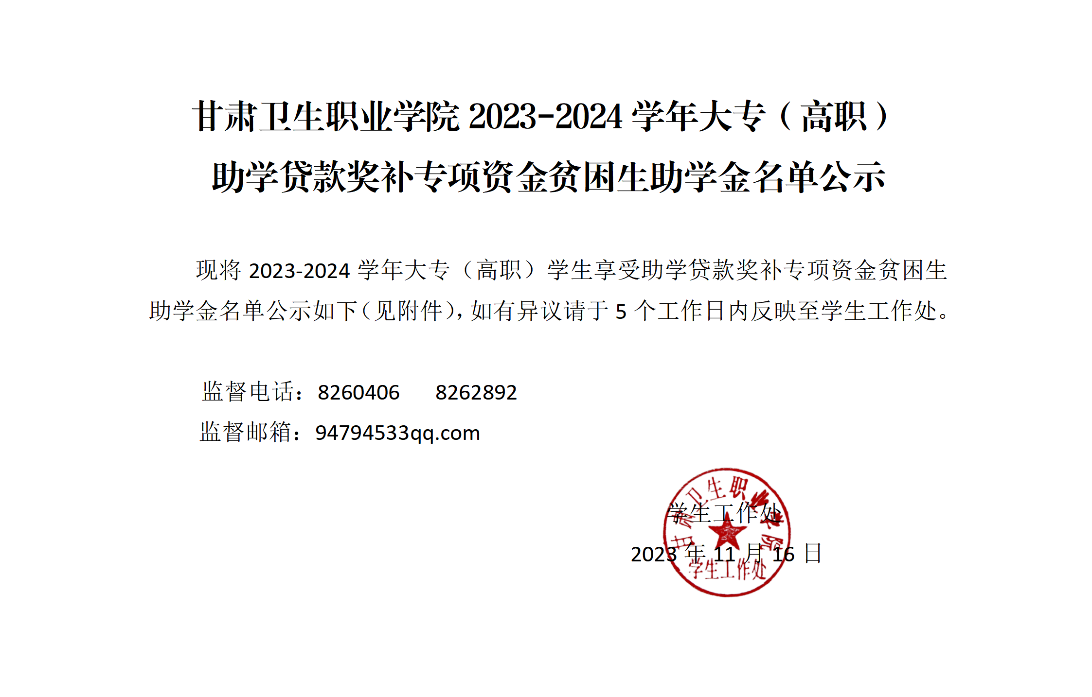 365英国上市集团官网2023-2024学年大专(高职)助学贷款奖补专项资金贫困生助学金名单公示发布时间:2023-11-17 365英国上市集团官网2023-2024学年大专(高职)助学贷款奖补专项资金贫困生助学金名单公示发布时间:2023-11-17
