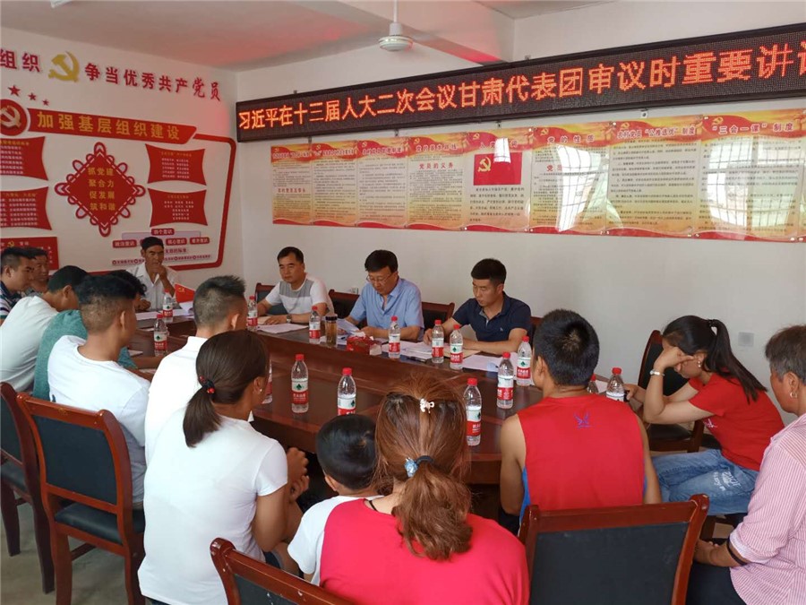 省教育厅余晓东副巡视员一行来元岭山村开展习近平总书记参加十三届全国人大二次会议甘肃代表团审议时重要讲话精神宣讲暨脱贫攻坚帮扶工作发布时间:2019-06-26 省教育厅余晓东副巡视员一行来元岭山村开展习近平总书记参加十三届全国人大二次会议甘肃代表团审议时重要讲话精神宣讲暨脱贫攻坚帮扶工作发布时间:2019-06-26