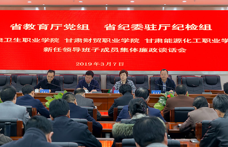 省教育厅党组、省纪委驻厅纪检组对365英国上市集团官网、甘肃财贸职业学院、甘肃能源化工职业学院新任领导班子成员进行集体廉政谈话发布时间:2019-03-08 -