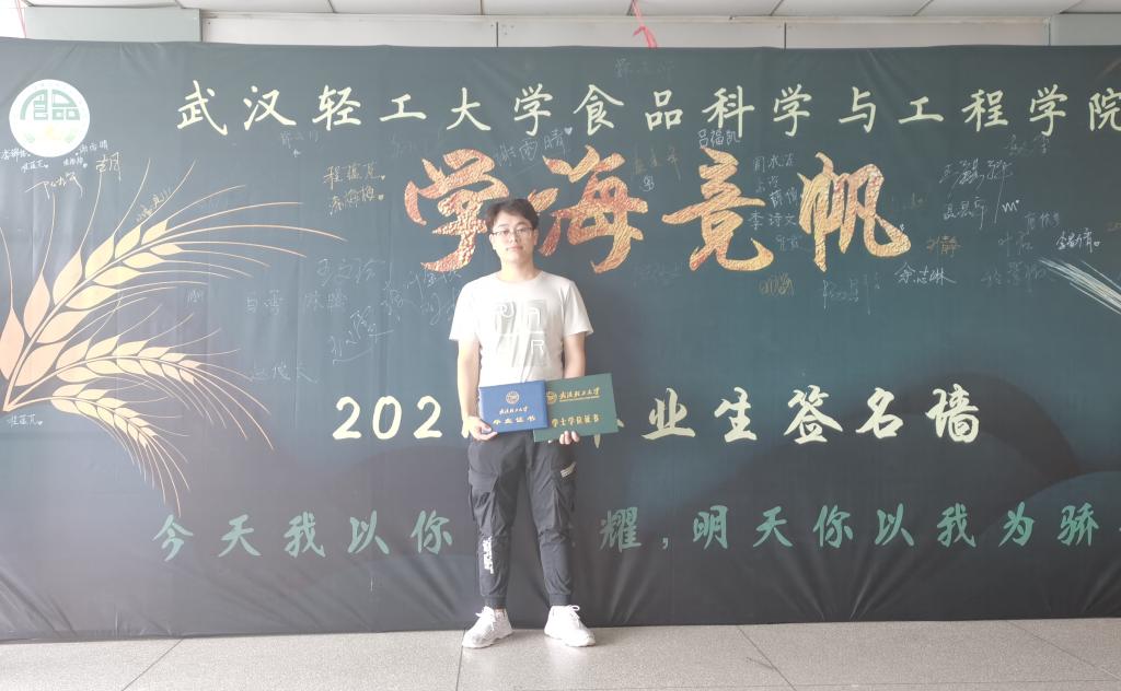 刘杰,男,食工1704班,中共预备党员。在大学期间曾担任过班干部以及导学员,获得过食品学院院力源二等奖学金以及毕业生学业奖学金,同时还获得过校优秀团员、院优秀学生干部等荣誉称号。永不止步,他在2021年研究生考试中成功圆梦,考入江南大学。