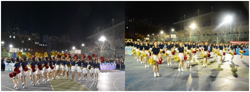 2021年3月25日晚,由武汉轻工大学数学与计算机科学学院办的第四届学生女子啦啦操大赛在金银湖校区灯光篮球场顺利举行,此次比赛特别邀请了数计学院党委书记孟三爱老师,体育部龚艳老师,校团委周雨露老师担任评委及指导老师。