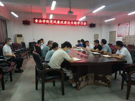 为进一步落实学校2020年党风廉政建设工作部署与要求,提高学院教师的廉政意识,将党风廉政建设责任落到实处,9月14日上午,食品学院召开了党风廉政建设教育专题学习会,学院全体党政班子成员、各系正副主任、实验室正副主任、院办主任及学工办老师参加了会议。会议由学院党委书记王宏光主持。
