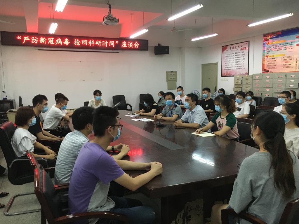 为保障我校研究生能按期完成科研任务,经过学校的综合评估与多方努力,自2020年7月7日起,食品学院有科研任务的一百余名研究生已陆续返校。为加强返校研究生防疫防控意识,珍惜宝贵时间,保质保量完成科研任务,食品学院于7月13日中午12:30在科教楼809会议室召开了“严防新冠病毒,抢回科研时间”研究生座谈会。食品学院党委书记王宏光、学校防控办执行副主任刘竞、研究生辅导员汪娴以及全体返校研究生参加了本次会议。