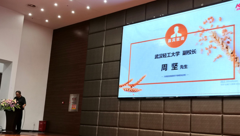 周坚副校长受校党委书记谭晓明先生、校长王志勇先生的委托,代表武汉轻工大学在开班仪式上致辞。“梦想从学习开始,事业从实践起步”。克明面业的成功诠释了一个学习型企业的成功,正是以克明面业为代表的中国企业,用点滴发展,有力的推动中国巨轮披荆斩棘、破浪前行。面对新时代的大潮,高质量发展的要求,唯改革者进,唯创新者强,唯改革创新者胜。与企业一样,大学同样必须答好改革创新的必答题。这次培训是一次难得的学习提升的机会,也是一次难得的合作发展的机会,更是一次难得的升华友谊的机会。希望此次培训能结合产业融合发展的趋势和基础的专业知识,在加强双方合作交流的同时,满足企业对于技术和创新的需求。