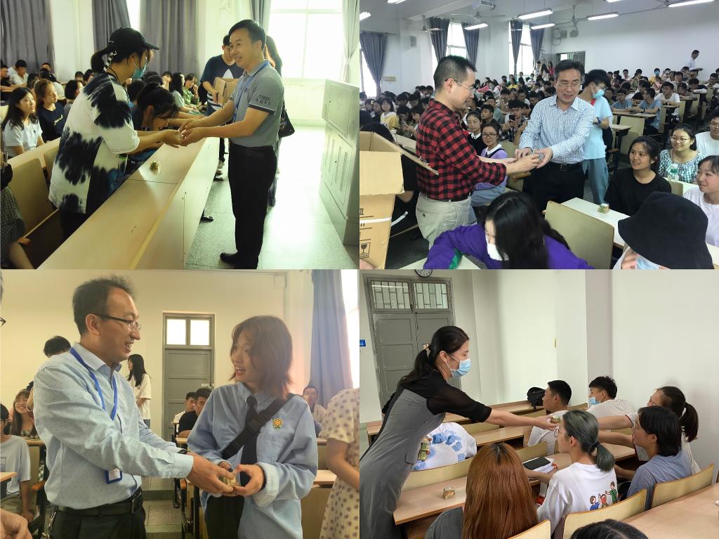 独在异乡为异客,每逢佳节倍思亲。为了让新生感受到学院的关怀与关心,在中秋佳节即将到来之际,食品学院开展了“送月饼,暖人心”的活动。9月30日中午,学院院长丁文平、党委书记王宏光、常务副院长王学东和院领导班子,为全体新生发放美味可口的月饼。