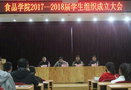 本报讯(食品学院 刘宇翀 摄影 张顺庭 王娴)为喜迎十九大,迎接17级新干事们暨总结2016至2017学年学生组织工作,食品学院学生组织成立大会于2017年10月18日12:30在常青校区科学报告厅顺利召开。出席本次大会的有食品学院分党委书记王宏光老师,分党委副书记易文君老师,分团委书记罗霄老师和学工办主任杜典初老师。