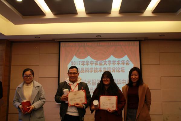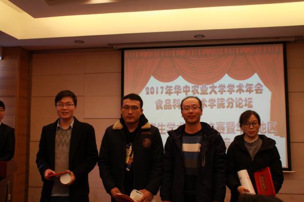 本报讯(食品学院 研究生会)为了加强兄弟院校之间交流,开拓研究生视野,促进研究生学术交流。2017年12月9日,食品学院10名研究生代表应邀参加华农研究生学术年会食品学院分会,年会地点在华农食品学院5楼报告厅进行。来自华中农业大学(2博1硕)、河南农业大学(2硕)、中南林业大学(1硕)、湖南农业大学(1硕)、武汉轻工大学(2硕)共9名研究生进行学术汇报。