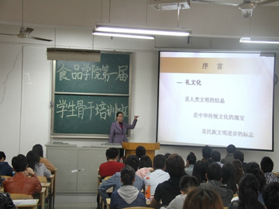 10日下午14:00,食品学院分团委书记许敏武以《当代大学生干部组织认同探究——以武汉轻工大学食品学院学生干部培训问卷调查为例》的调研报告为例主要讲解了学生组织的功能及实现,主要包括学生组织的基本概念、学生组织价值取向、团委老师与学生干部的关系、学生组织在实现其功能中主要要考虑的因素四个方面的内容,许老师着重介绍了学生会、共青团、学生社团几个学生组织的不同与区别。