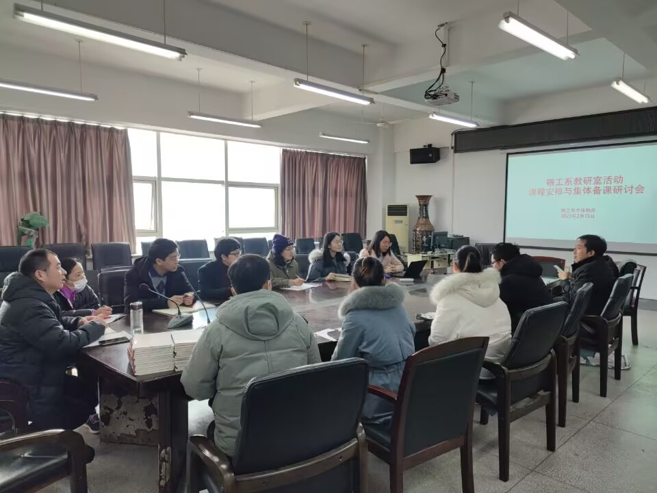 食品学院粮食工程系于2023年2月15日下午2:00在科教楼809室开展教研室集体活动。本次活动主要包括三个方面内容:(1)开学初期的教学准备情况;(2)新进粮工系教师的课程安排情况摸查;(3)毕业实习安排及备课。系主任刘刚,系党支部书记王国珍,及其他全体粮工系教师参加。