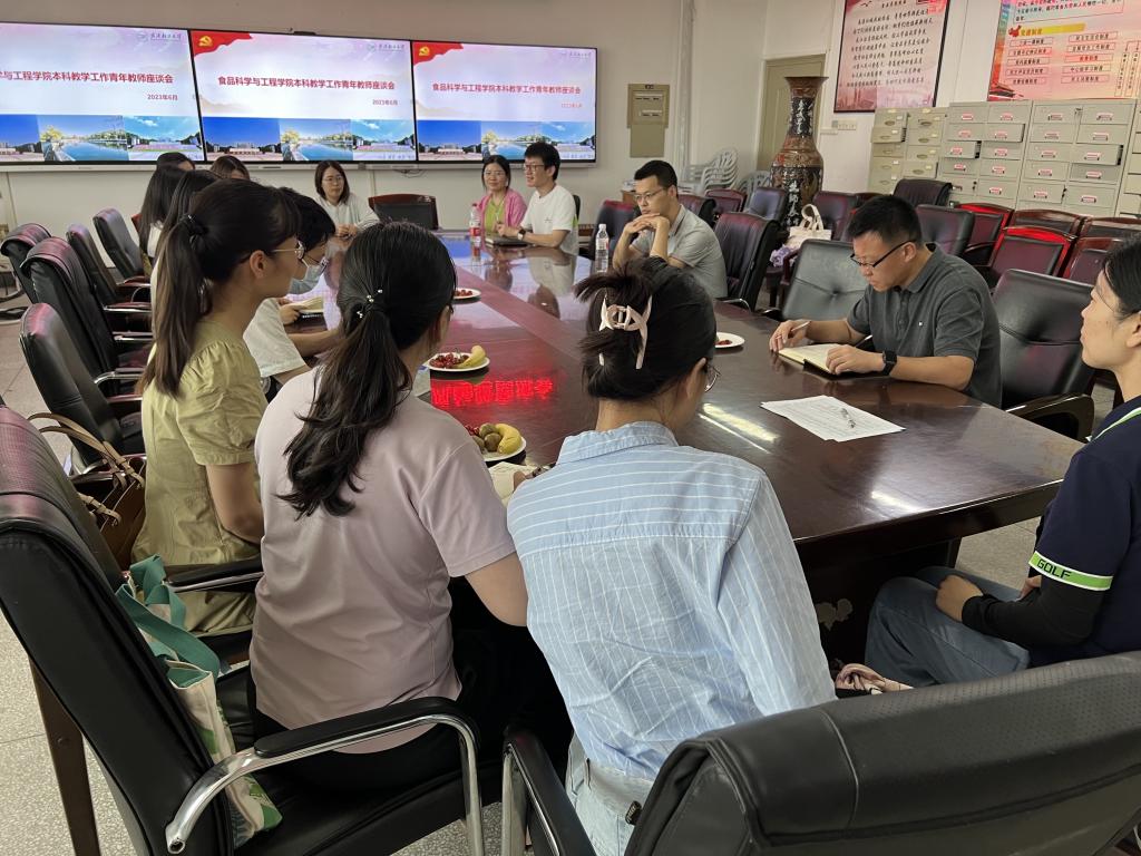 2023年6月8日下午,食品学院在科教楼809会议室组织召开青年教师教学工作座谈会,与会教师围绕师德师风建设、教学审核评估、工程认证专业申请、课程思政、教学运行、考务工作等进行了深入交流,副院长胥伟强调了五个思政、教学审核评估、教学运行、考务纪律等的重要性,希望学院年轻教师站稳三尺讲台、严守教学纪律、遵循教学规律,以学生为中心切实做好本科教学工作。