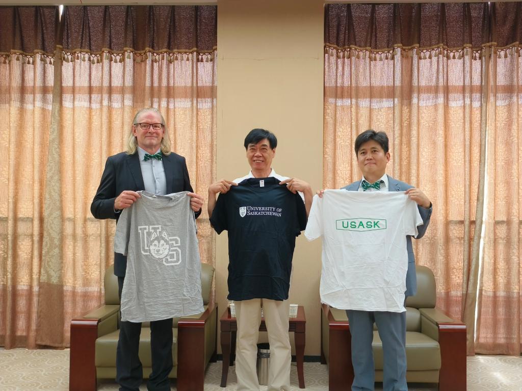 2024年7月1日上午,加拿大萨斯喀彻温大学农业与生物资源学院Martin J.T. Reaney教授、韩国高丽大学食品与生物科技学院院长Kim Young Jun教授一行应邀来我校交流访问,并在金银湖图书馆七楼会议室举行三校合作备忘录签约仪式,校长董仕节、食品学院班子成员和师生代表参加了本次活动。