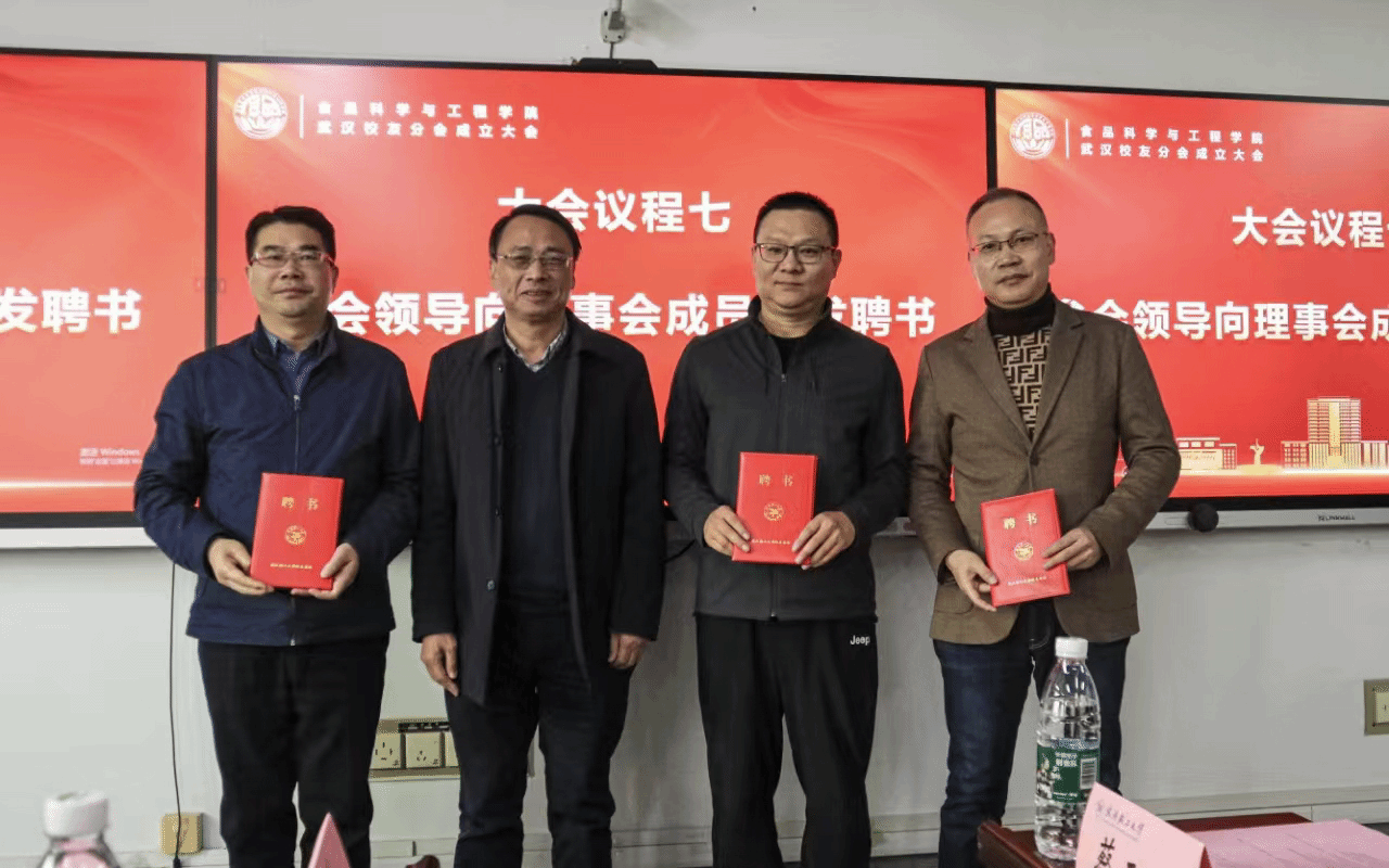 12月7日上午,食品科学与工程学院武汉校友分会成立大会在常青校区积学楼809隆重举行。校党委常委、副校长侯永清出席成立大会,校友代表、校友办负责人、食品学院领导老师参加会议。