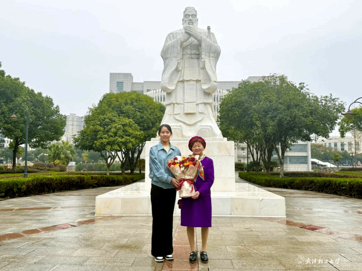 随后,朱崇淑仔细察看了近期翻新的孔子像。据悉,这座孔子像最初由朱崇淑校友捐资兴建,是校园内重要的文化地标。孔子像的修缮不仅是对中华优秀传统文化的传承与弘扬,更是为了激励广大学子修身立德、见贤思齐。