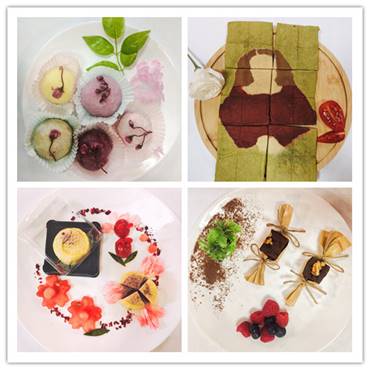 随后,比赛正式开始。大赛通过现场答辩与现场品尝相结合的方式进行。富有新意的作品名称吸引了评委们的眼睛,“樱飞草长酪”、“未语先笑——创意桃胶奶冻”、“黄金裹糊鱼”、“金龙鱼棒棒棒”、“芒芒盛夏”奶冻、 “金鲤玉延糕”等等,作品类别真可谓丰富多彩,精彩纷呈。同学们新颖的理念、独特的视角,富有激情的讲解,赢得了评委的阵阵掌声。经过激烈角逐,“未语先笑——桃胶奶冻”和“黄金裹糊鱼”荣获一等奖,“樱飞草长酪”荣获最佳创意奖,“未语先笑——桃胶奶冻”获得最佳风味奖。