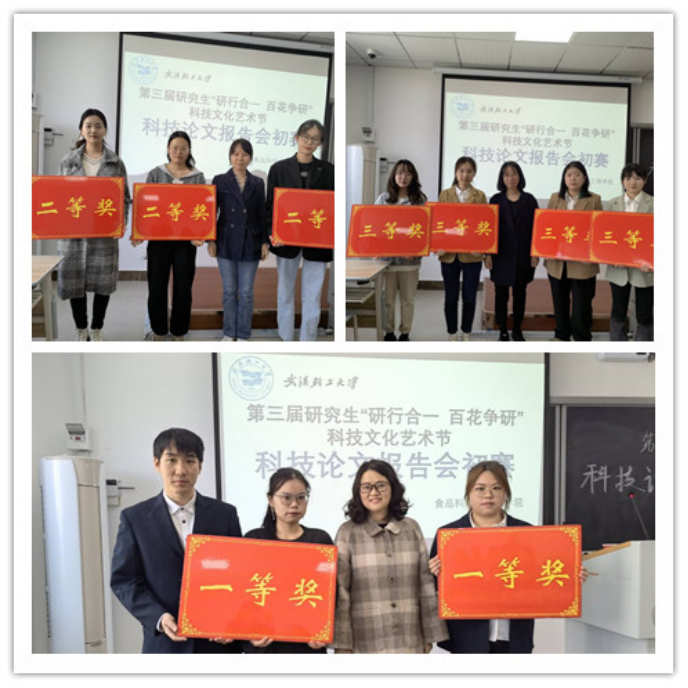 4月7日上午,食品学院第十六届研究生科技论文报告会在金银湖实验教学楼顺利举办。食品学院张海枝副教授、丁贝贝副教授、从艳霞老师担任比赛评委,食品学院研究生辅导员汪娴及研究生代表参加了本次活动。