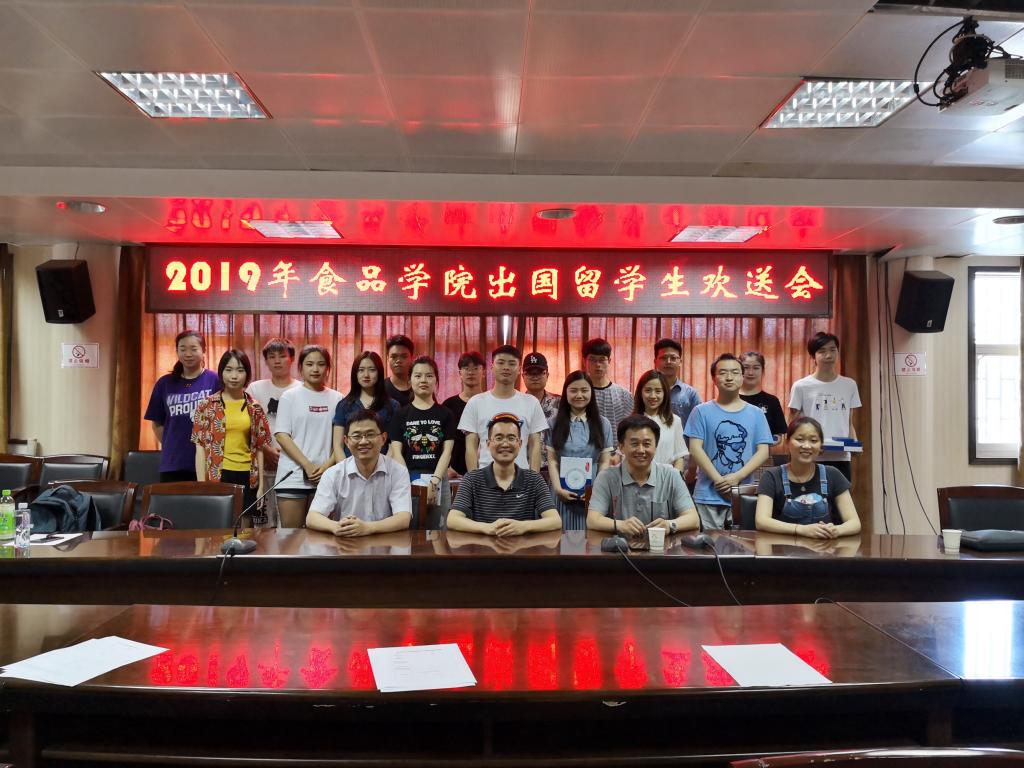 2019年食品学院共有17名本科生赴英国提赛德大学留学,4名研究生公费赴西班牙、美国继续深造。在欢送会上,各位领导为出国的同学赠送了纪念品,希望各位同学能珍惜学习机会,不忘初心、继续奋进。
