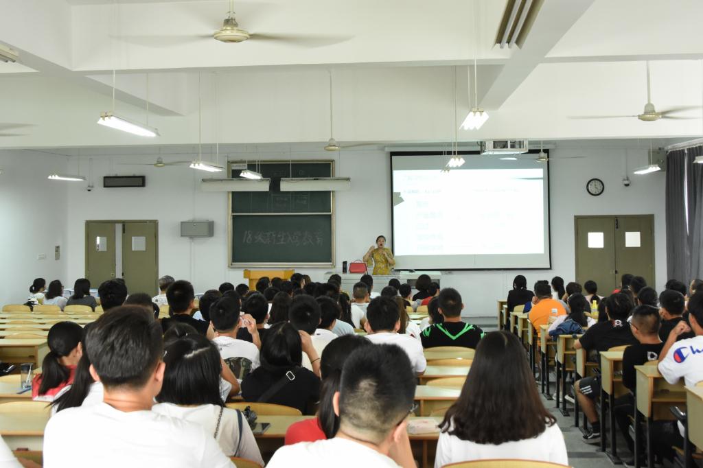 大会伊始,金灿老师首先表达了对新同学进入大学的祝贺以及开启人生崭新一页的美好祝愿,随后从学习环境和学习模式改变等方面的介绍帮助新生认识大学,适应大学,并从纪律处分条例,学生基础规范两方面对新生提出了要求,接着就“刻苦学习,成就未来”这一话题对新生大学四年的学习生涯提出建议和忠告,并以食品学院近三年普本考研录取学校统计为例激励新生认真学习,积极准备考研。最后,分别由18级新生辅导员牟星老师和中英辅导员张子涵老师为新生强调了军训相关事宜。