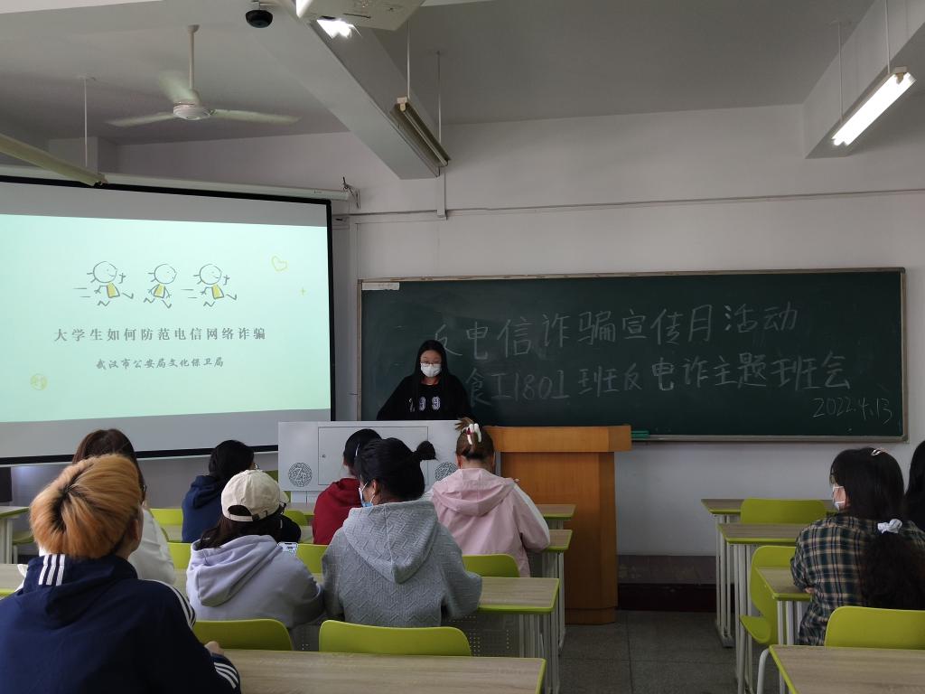正值2022年反电信诈骗宣传教育活动月,为贯彻落实校保卫处关于开展本活动的相关精神,提升师生防范电信网络诈骗的意识和能力,食品学院18级普本各班级于4月13日-14日开展了反电信诈骗主题班会。