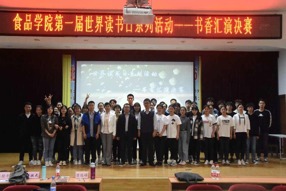本报讯(食品学院 王寅竹)4月22日晚6:30,由食品学院分团委力源•食光悦读俱乐部主办的世界读书日系列活动——书香汇演决赛于我校常青校区科学报告厅举行。食品学院党委副书记易文君、马克思学院教授唐俊锋、图书馆老师杜桂平、16级辅导员许敏武以及食品学院学生会主席团部分成员担任本次活动评委。