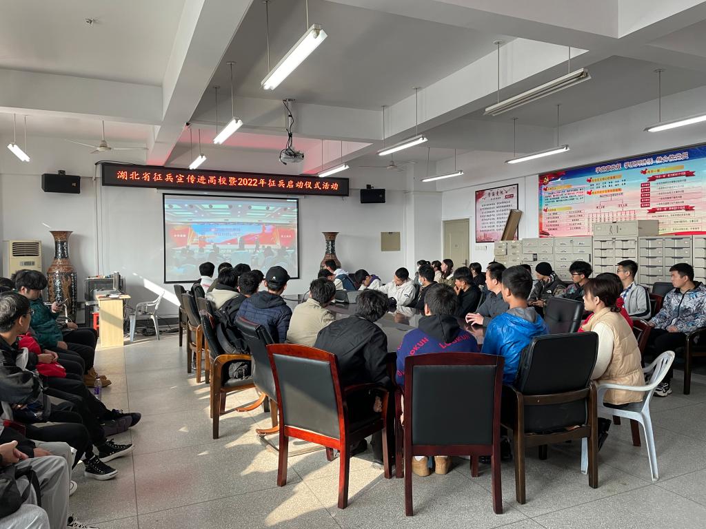 2021年12月10日上午10:00,食品学院在科教809组织师生观看湖北省征兵宣传进高校暨2022年征兵启动仪式活动网络直播,召开2022年度征兵宣传大会,食品学院党委书记王宏光、辅导员、各年级学生代表参加了本次会议。
