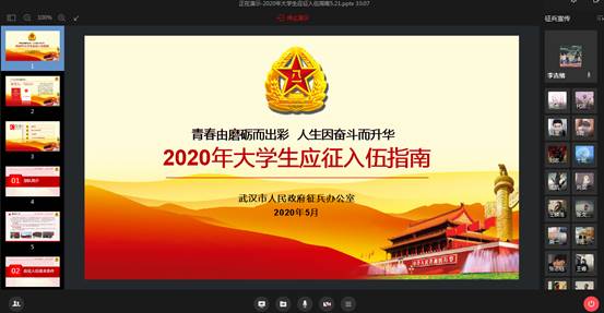 2020年6月30日19:00,食品学院2019级普本征兵宣传会议在企业微信上召开,2019级全体男生参加了本次会议。