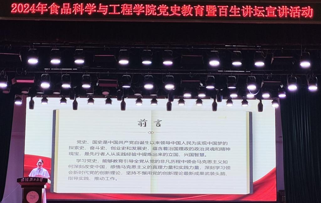 为引导学生进一步坚定理想信念,传承红色基因,厚植爱党爱国情怀,6月5日下午,食品学院召开2024年党史教育暨百生讲坛宣讲活动。