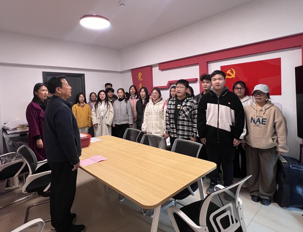 授牌仪式在全体与会人员奏唱国歌中拉开序幕。学院党委副书记王欣宣读党员宿舍名单。接着,学生党员代表徐奕发言,表示“党员宿舍”是一种荣誉,同时也是一种监督,将会严格督促自己,做好表率、敢于担当,在同学中起到模范带头作用。随后,学院领导、老师依次为15个学生党员宿舍授牌。学生党员一一张贴“党员宿舍”牌。