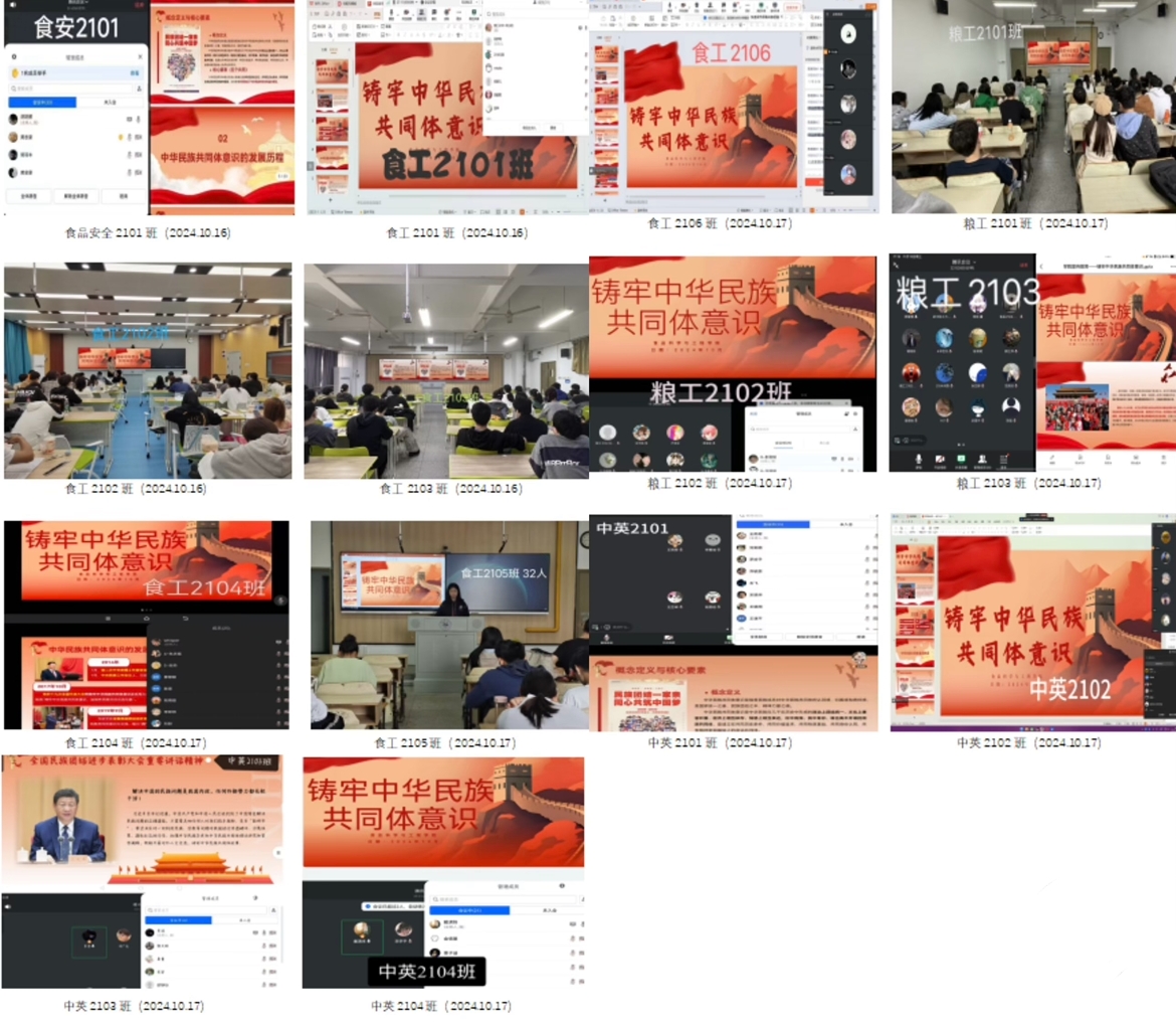 为进一步维护民族团结铸牢中华民族共同体意识,引导学生树立正确的国家观、民族观、文化观,食品学院金秋十月精心组织开展民族团结教育主题班会。学院全体学生参加。