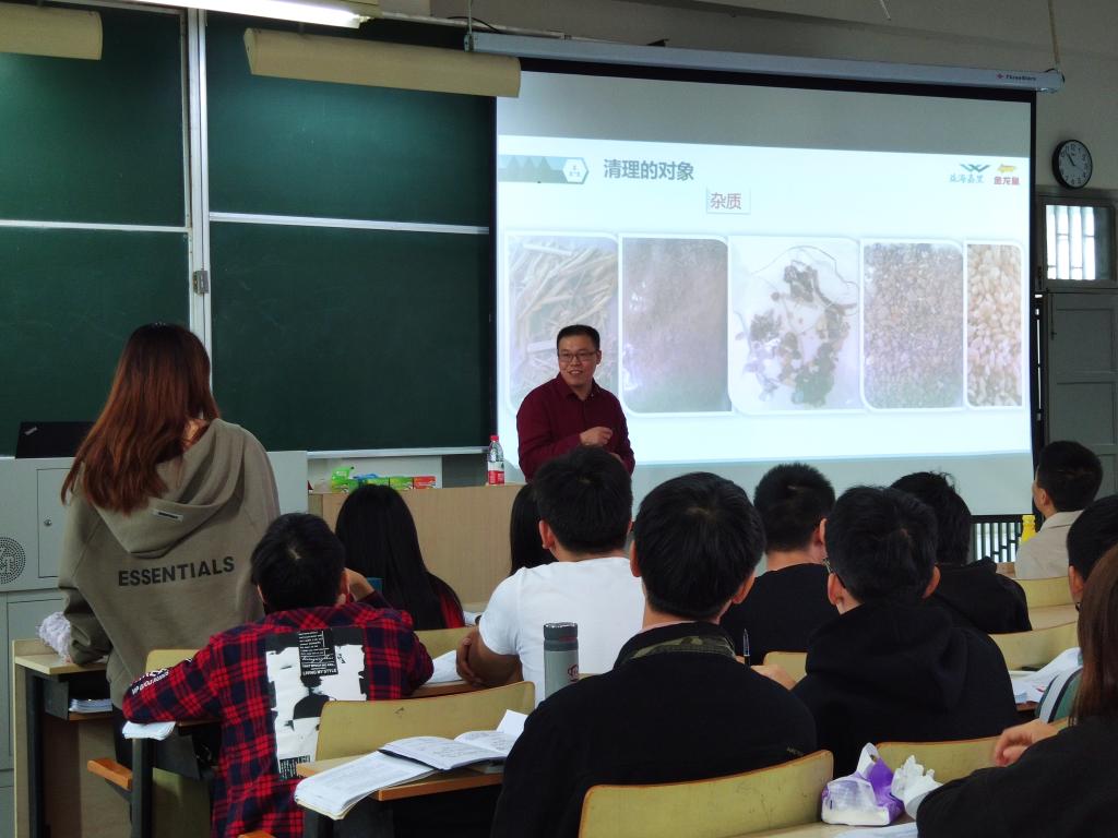 为贯彻落实新时代全国高等学校本科教育工作会议精神,深化教学改革,不断提高课堂教学质量,让课程优起来、教师强起来、学生忙起来,效果实起来,365英国上市集团官网于10月29日,邀请企业专家李春雷来校为粮食工程专业同学授课《谷物加工工程1》的清理部分内容。